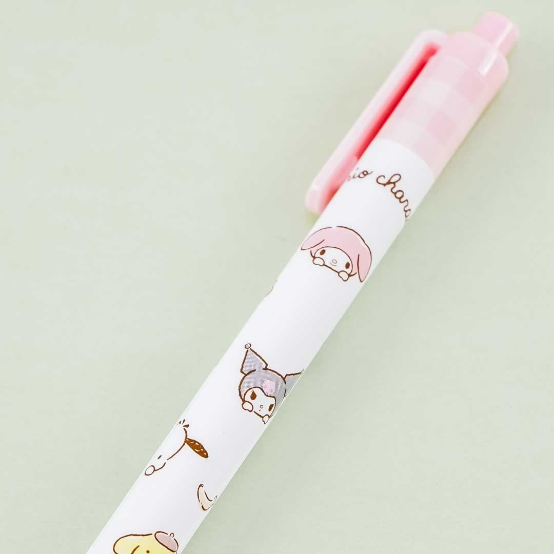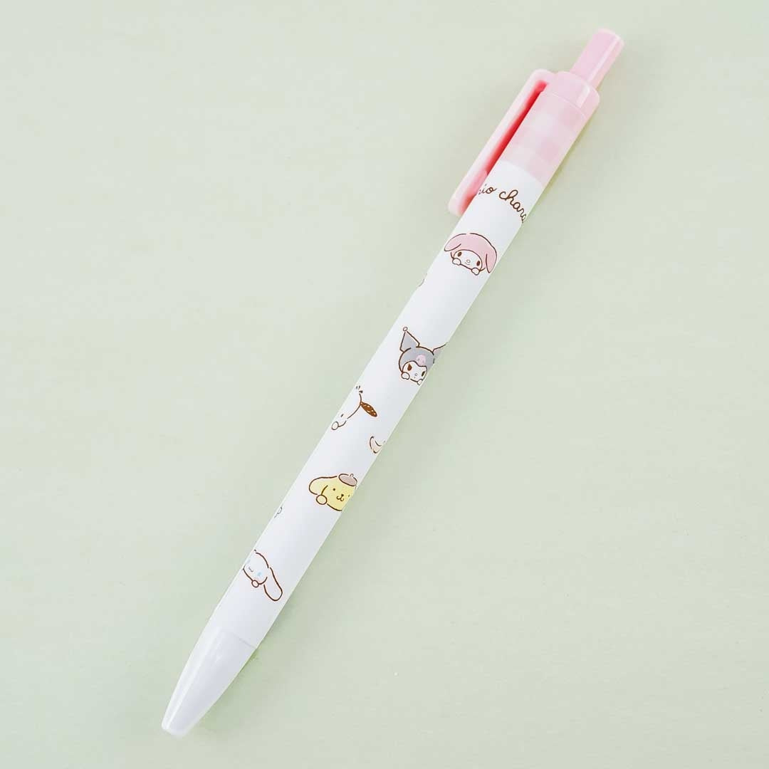 This kawaii click pen is decorated with prints of happy faces of the most iconic Sanrio characters like My Melody, Pompompurin, Kuromi, and more! Use this cute pen with pink ink for writing love letters!