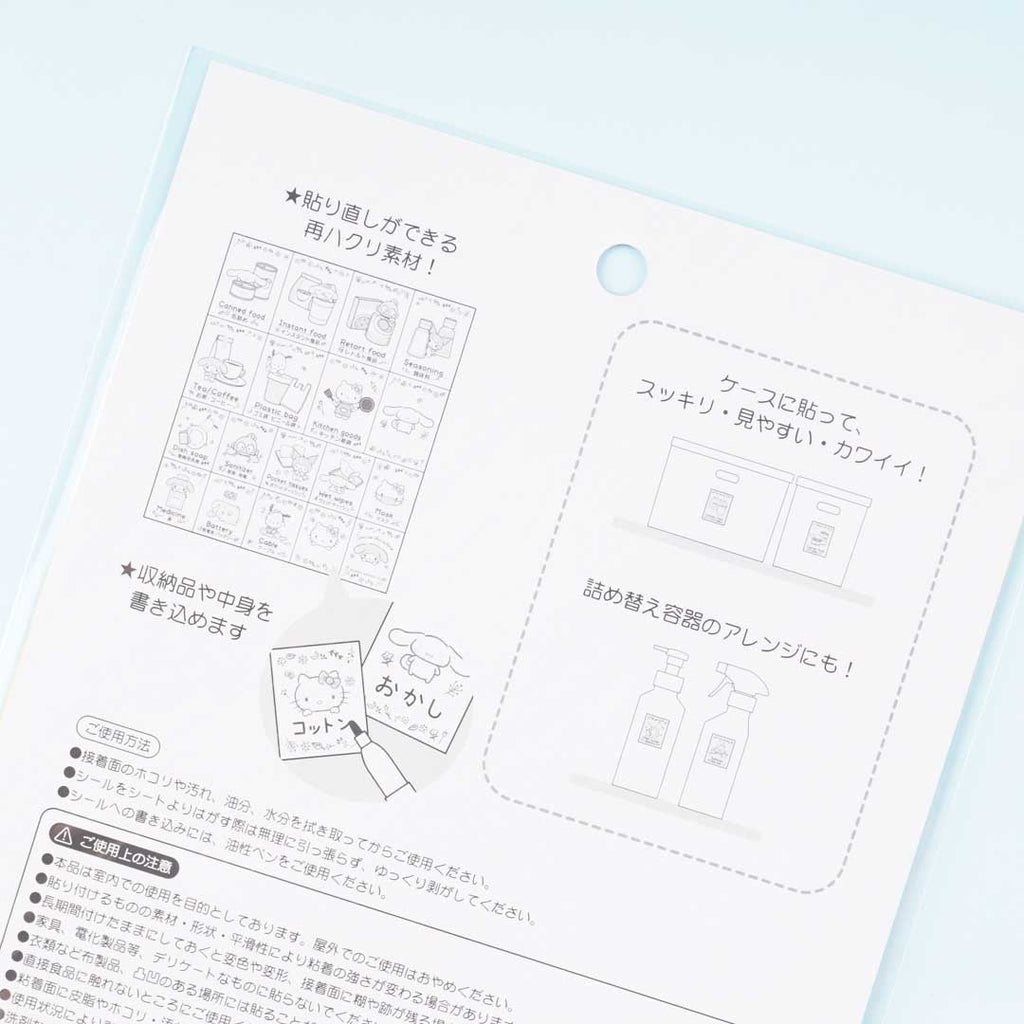 A sheet of Sanrio Characters stickers for labeling kitchen items, food, and daily essentials