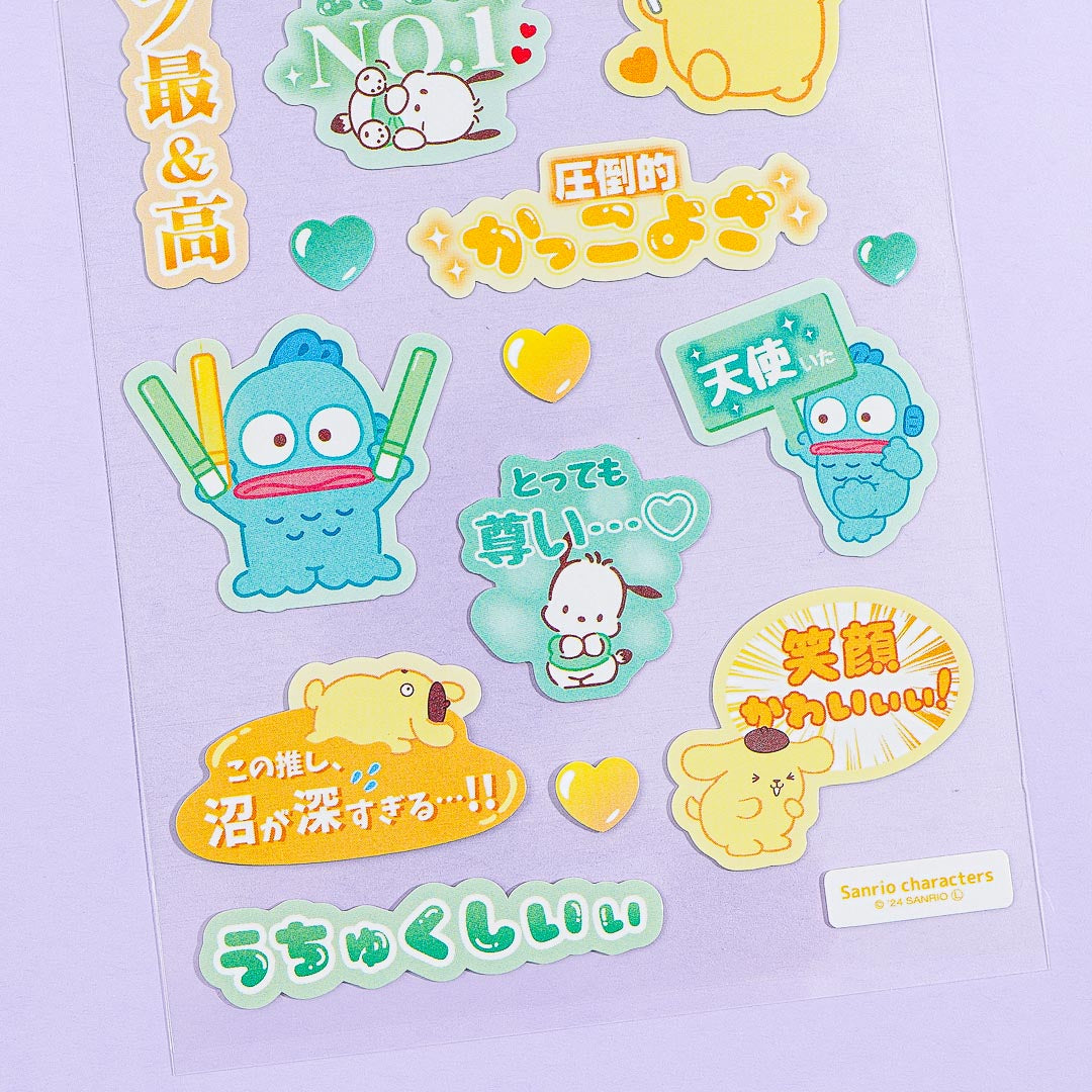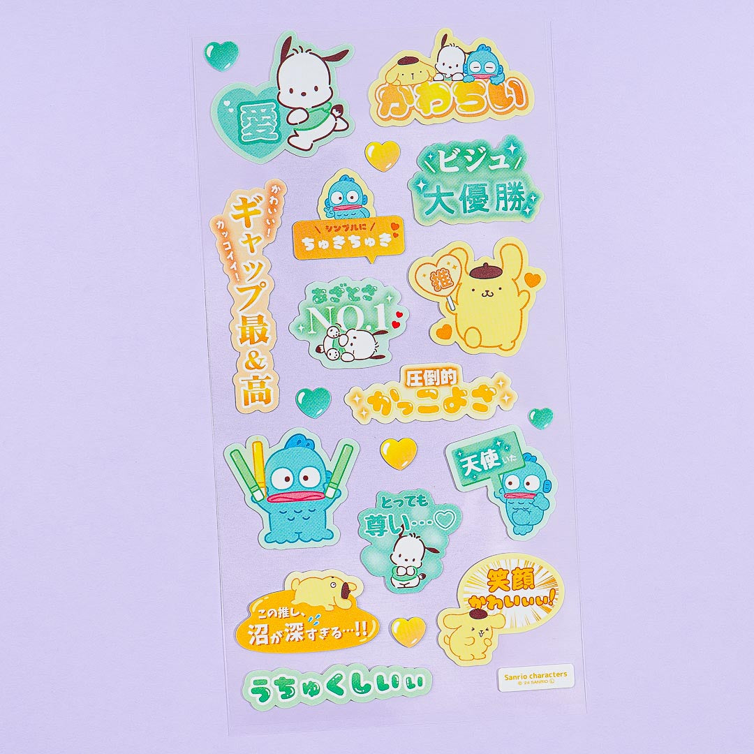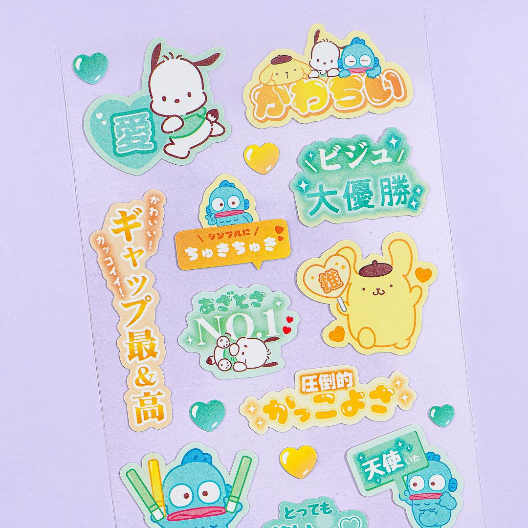 This super kawaii sheet of stickers comes from the Sanrio Sukipi series. It showcases Sanrio cuties holding up supporting messages written in Japanese! Use these stickers to decorate your planner.