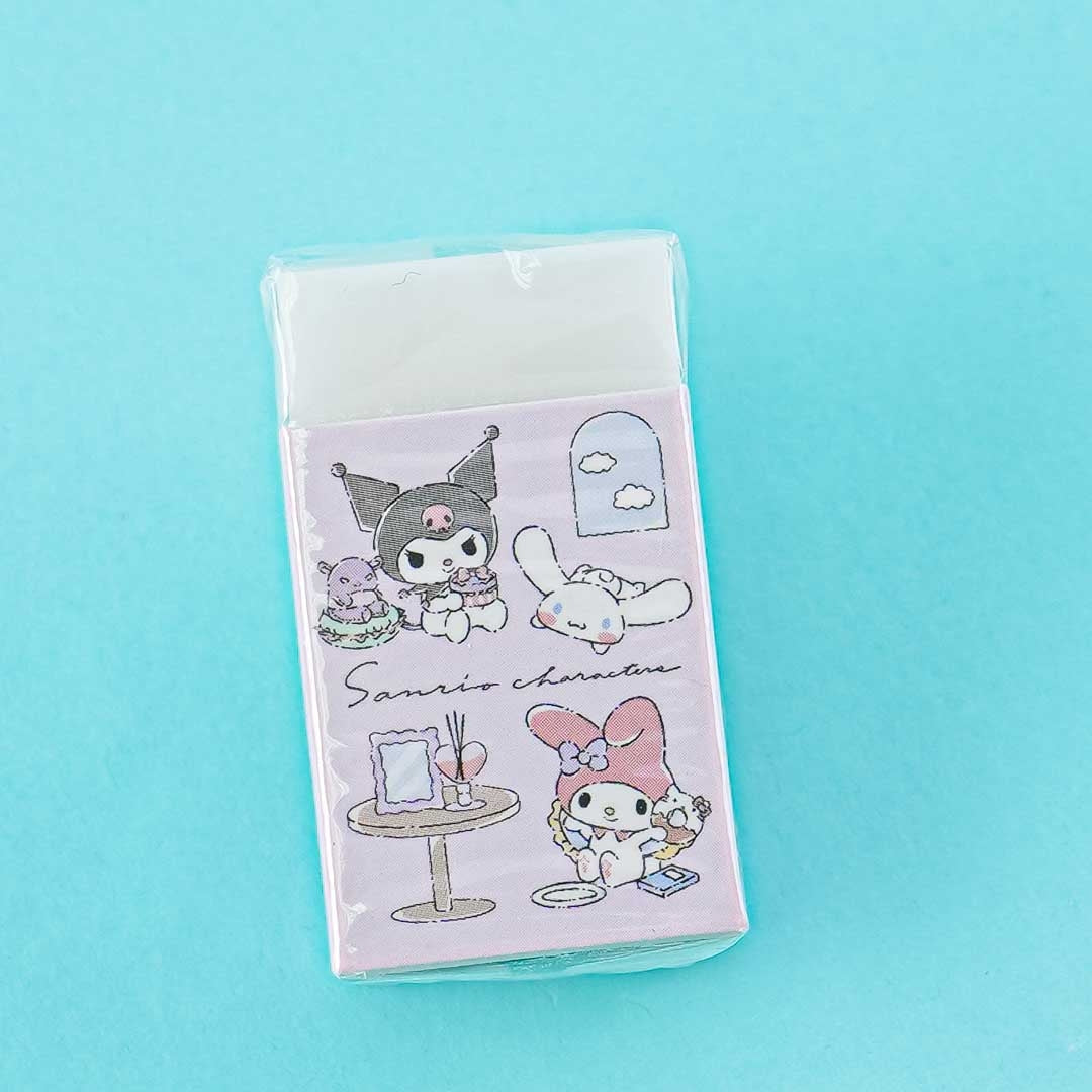 A kawaii eraser illustrated with Sanrio cuties having a party