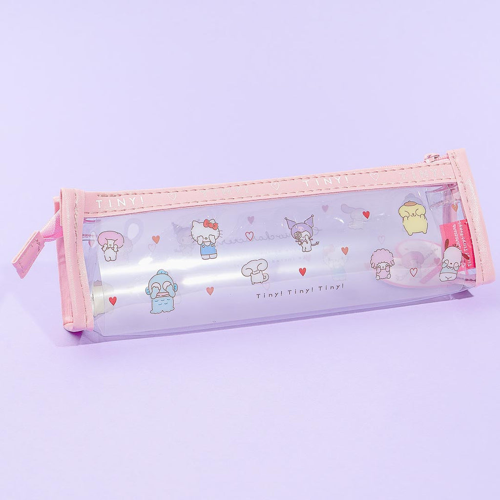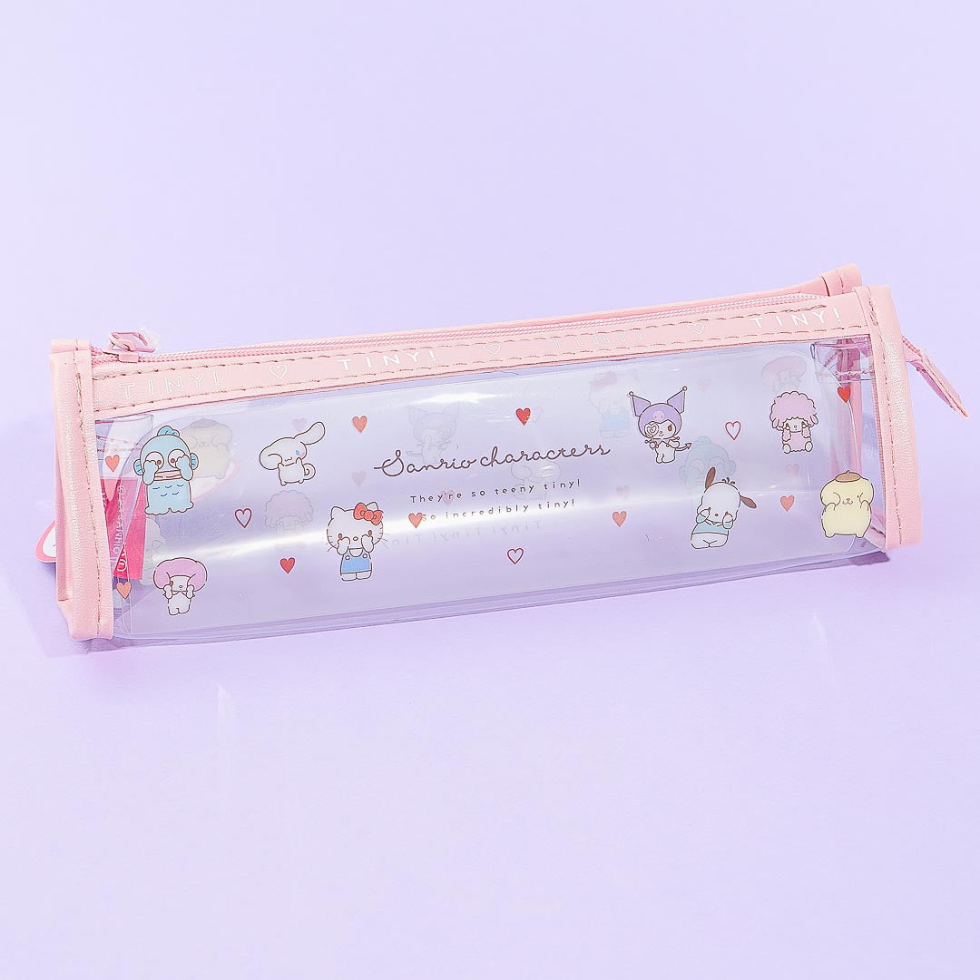 Keep your favorite pens inside this cute transparent pouch! It features kawaii illustrations of the Sanrio Characters covering their eyes while surrounded by tiny hearts.
