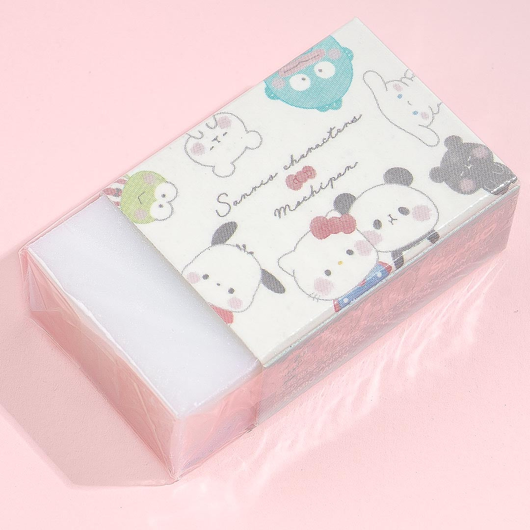 This kawaii rubber eraser features cute prints of Mochi Mochi Pandas dressed as Sanrio Characters! It's a special "matomaru-kun" eraser that clumps eraser shavings together so there's less mess when clearing your pencil mistakes.