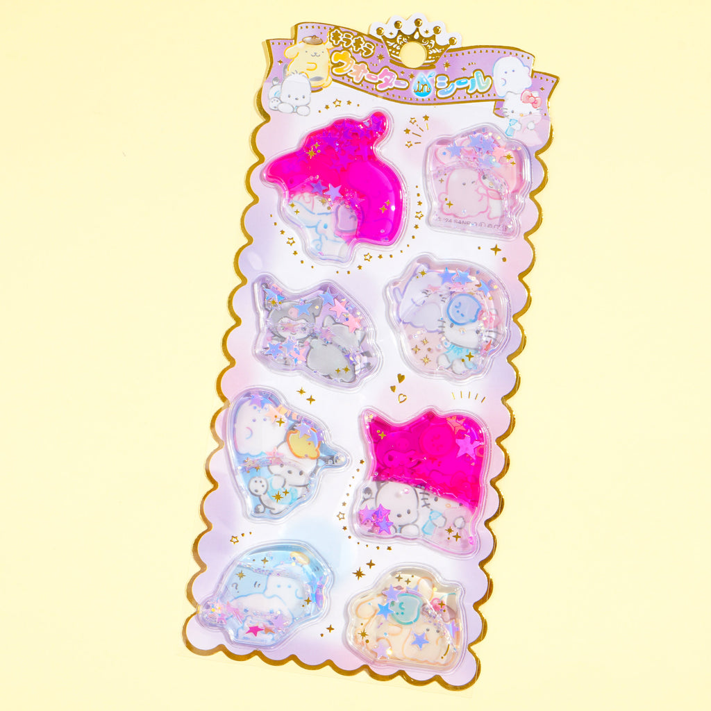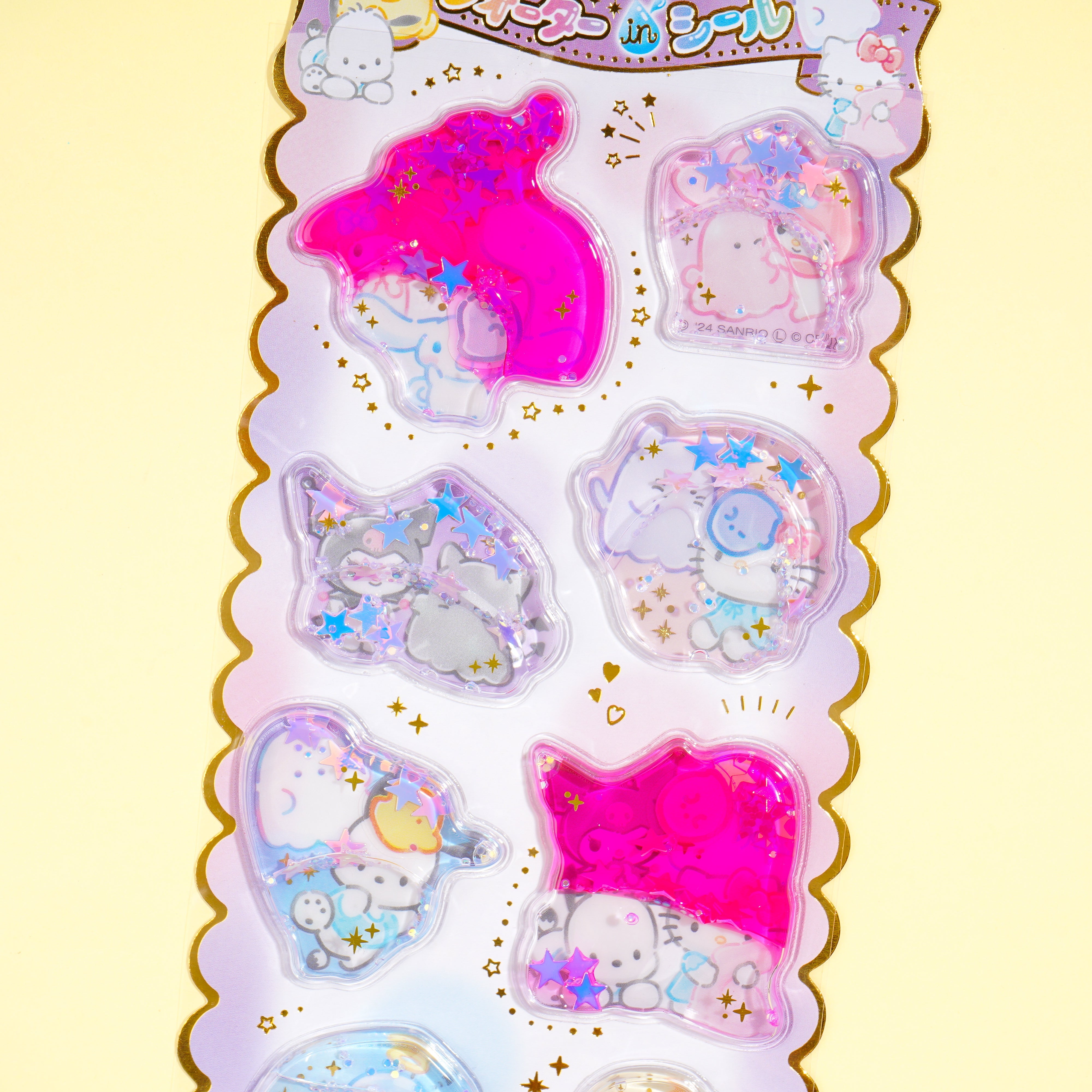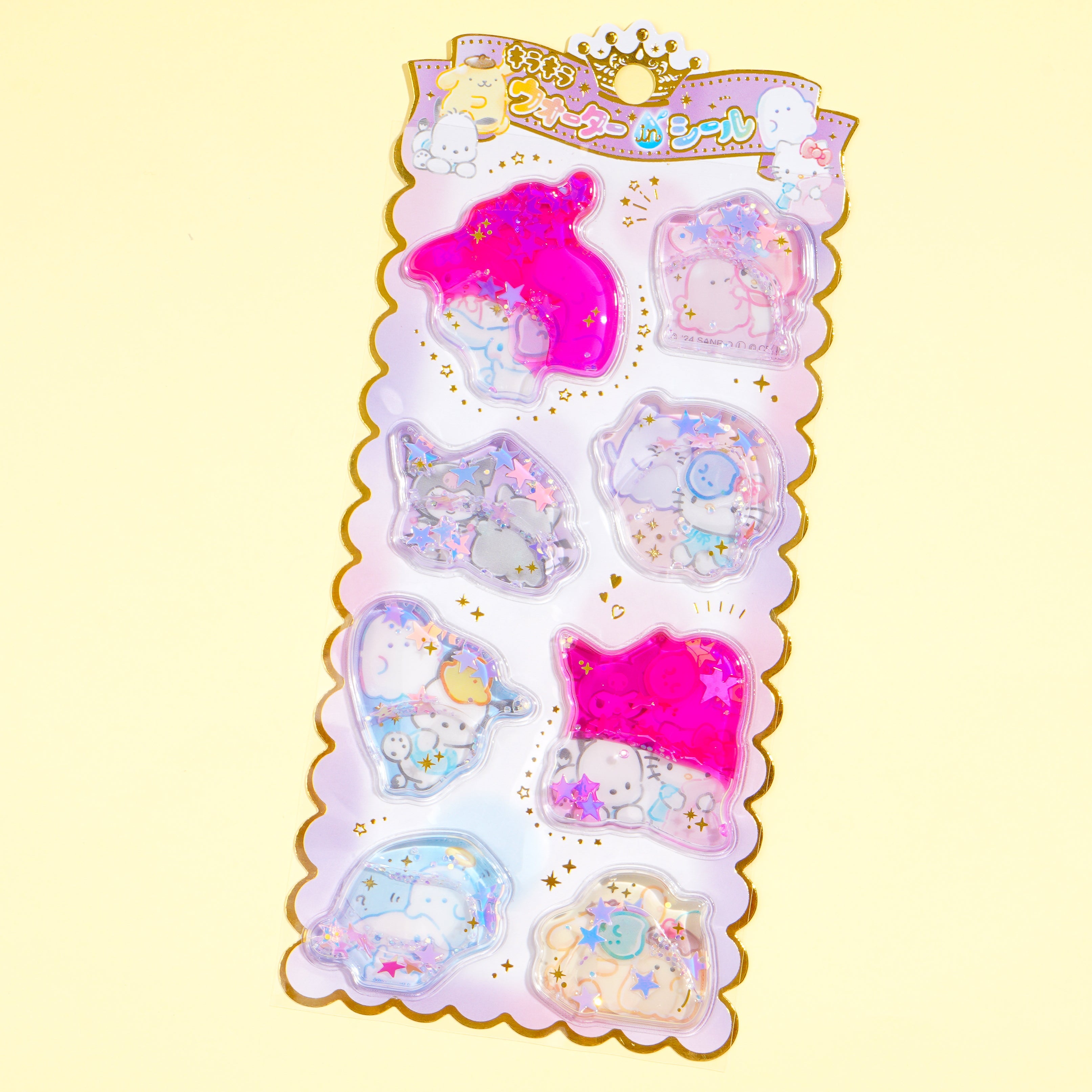 Decorate your journal with these super kawaii stickers! These special seals contain water with floating glitter and stars inside! The sheet is illustrated with different cute prints of the Sanrio Characters playing with the Obakenu ghosts.