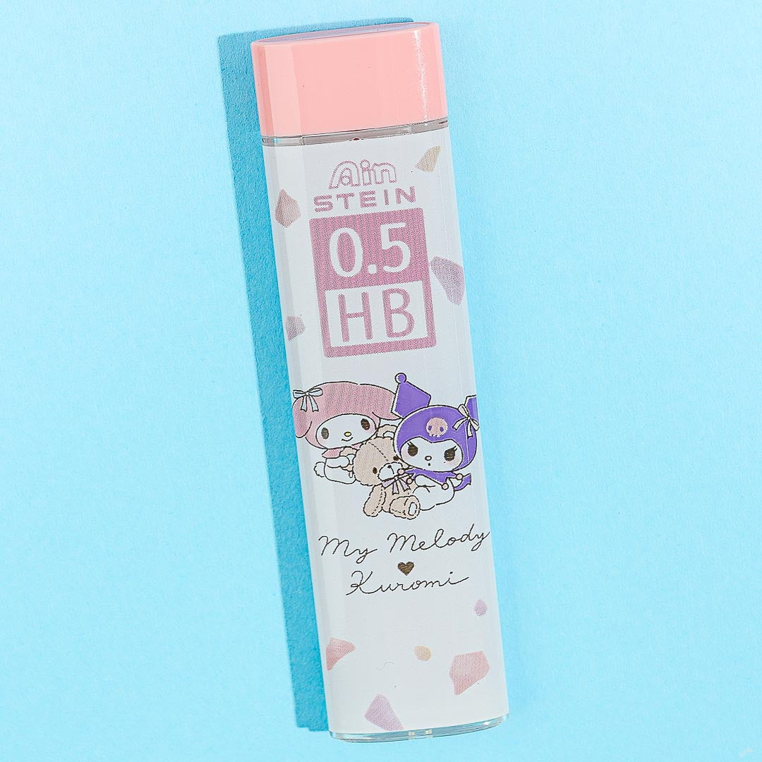This case of HB mechanical pencil refills features prints of My Melody and Kuromi playing with a teddy! Don't forget to bring it along in your pencil case with your mechanical pencils. Each pencil lead has a 0.5mm diameter.