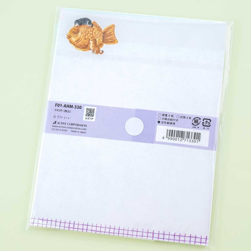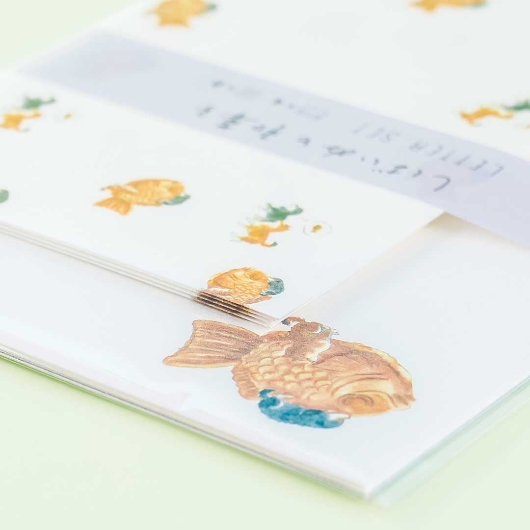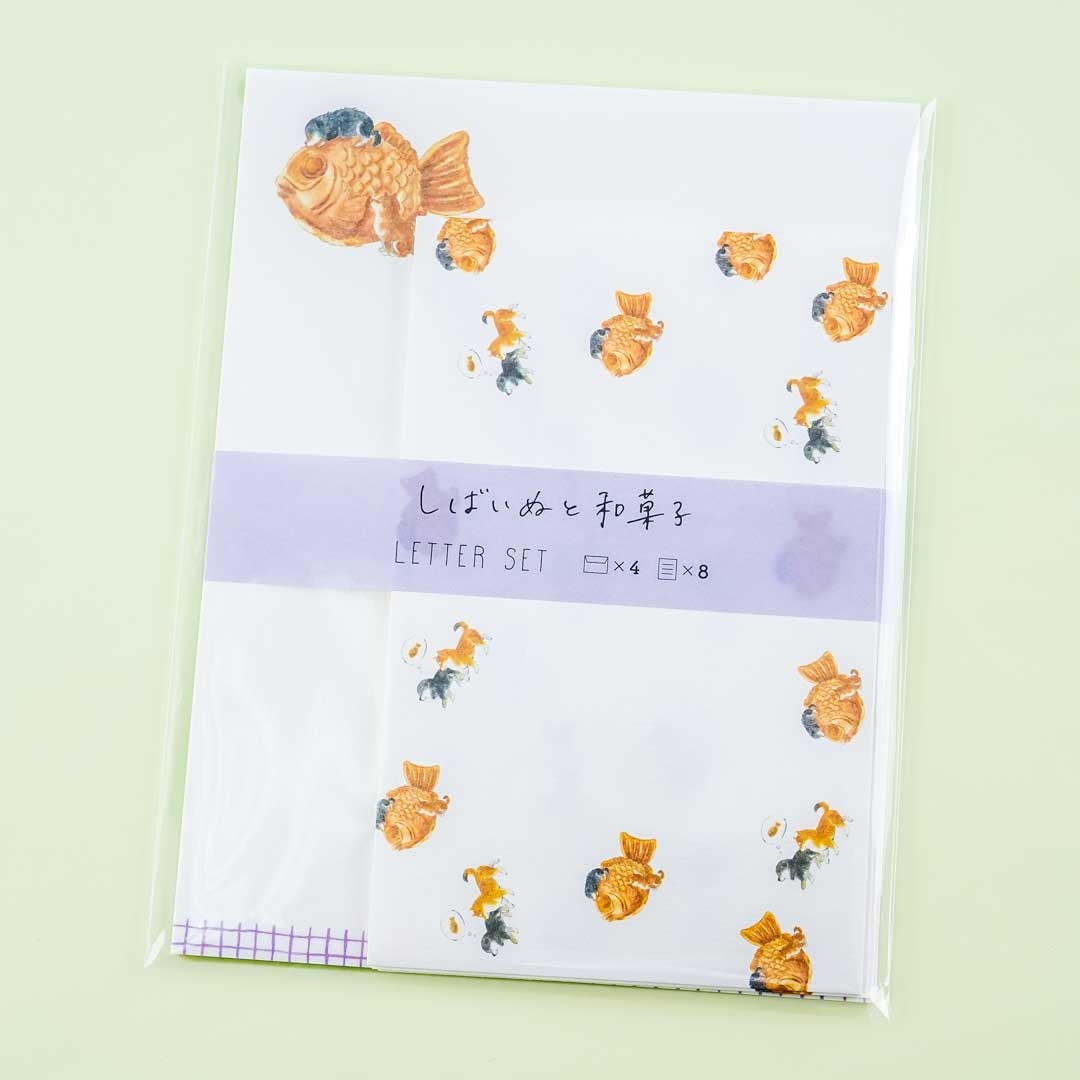 A pack of letter set illustrated with prints of Shiba Inu and Japanese fish-shaped rice cake