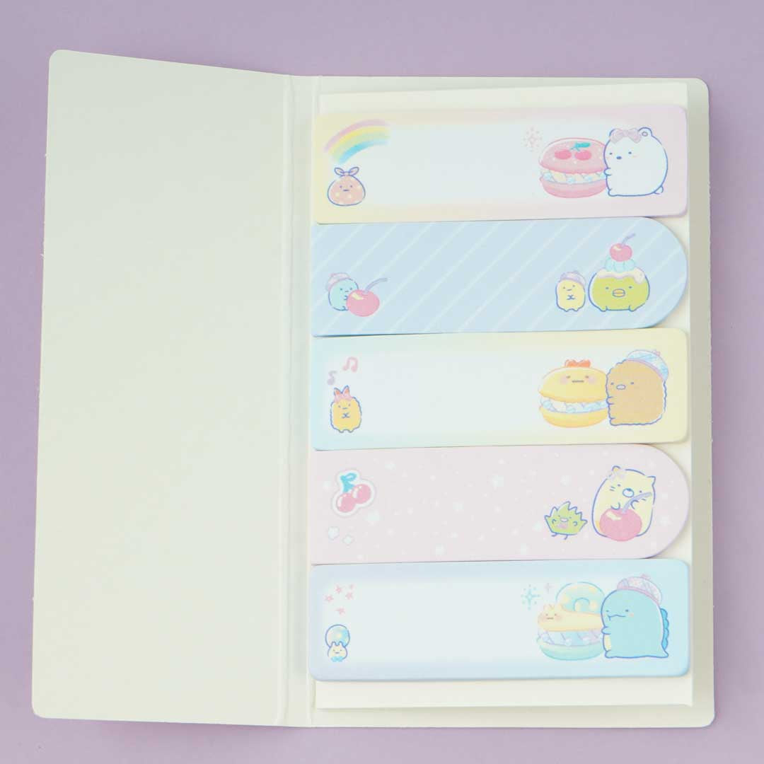 These kawaii sticky tabs are decorated with illustrations of the Sumikko Gurashi gang with cherries and desserts like macarons! Use this super cute set to mark important pages on your planner.