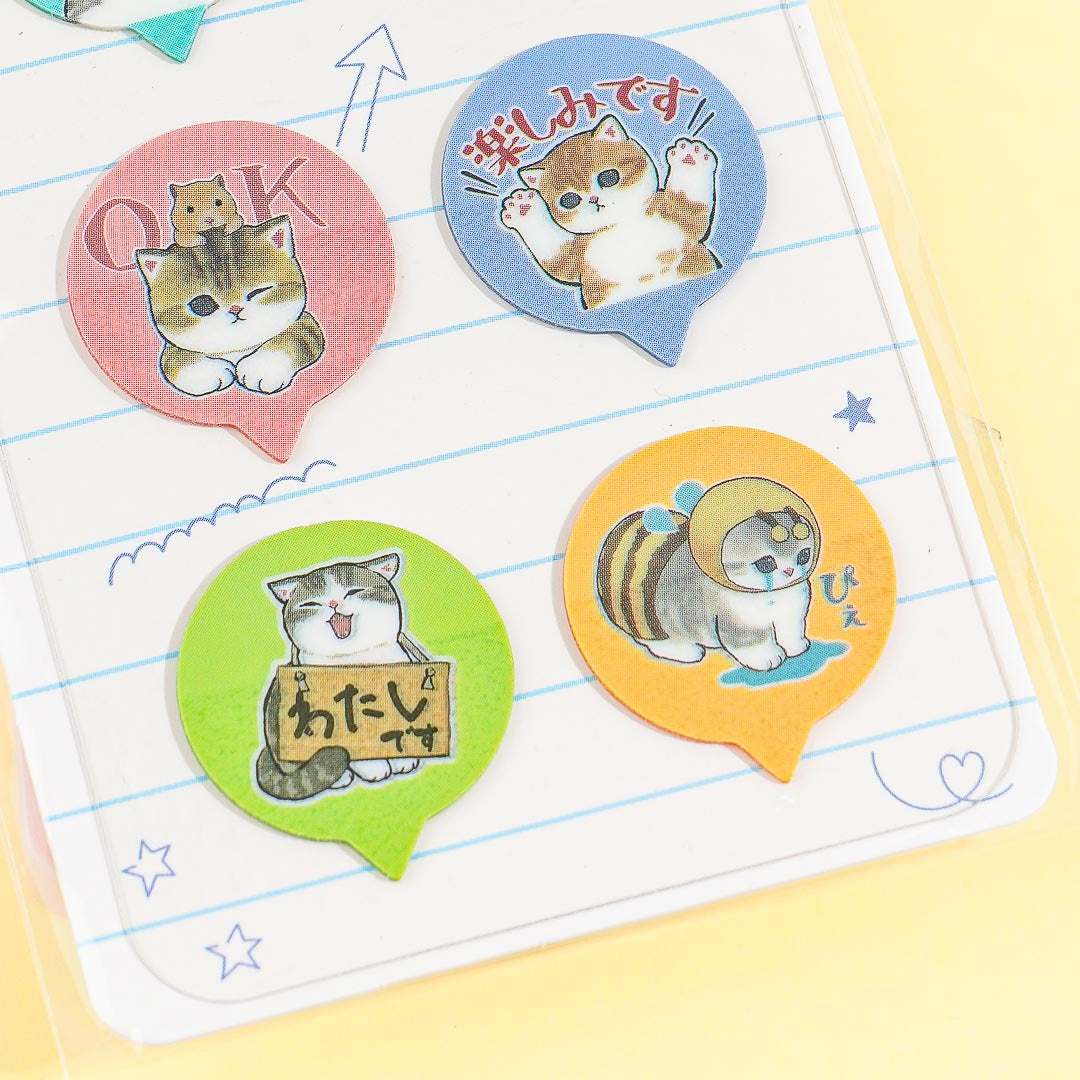 Mark your favorite book pages using these kawaii sticky tabs! Each die-cut piece is shaped like a speech bubble and has a super cute illustration of Mofusand characters with different reactions.
