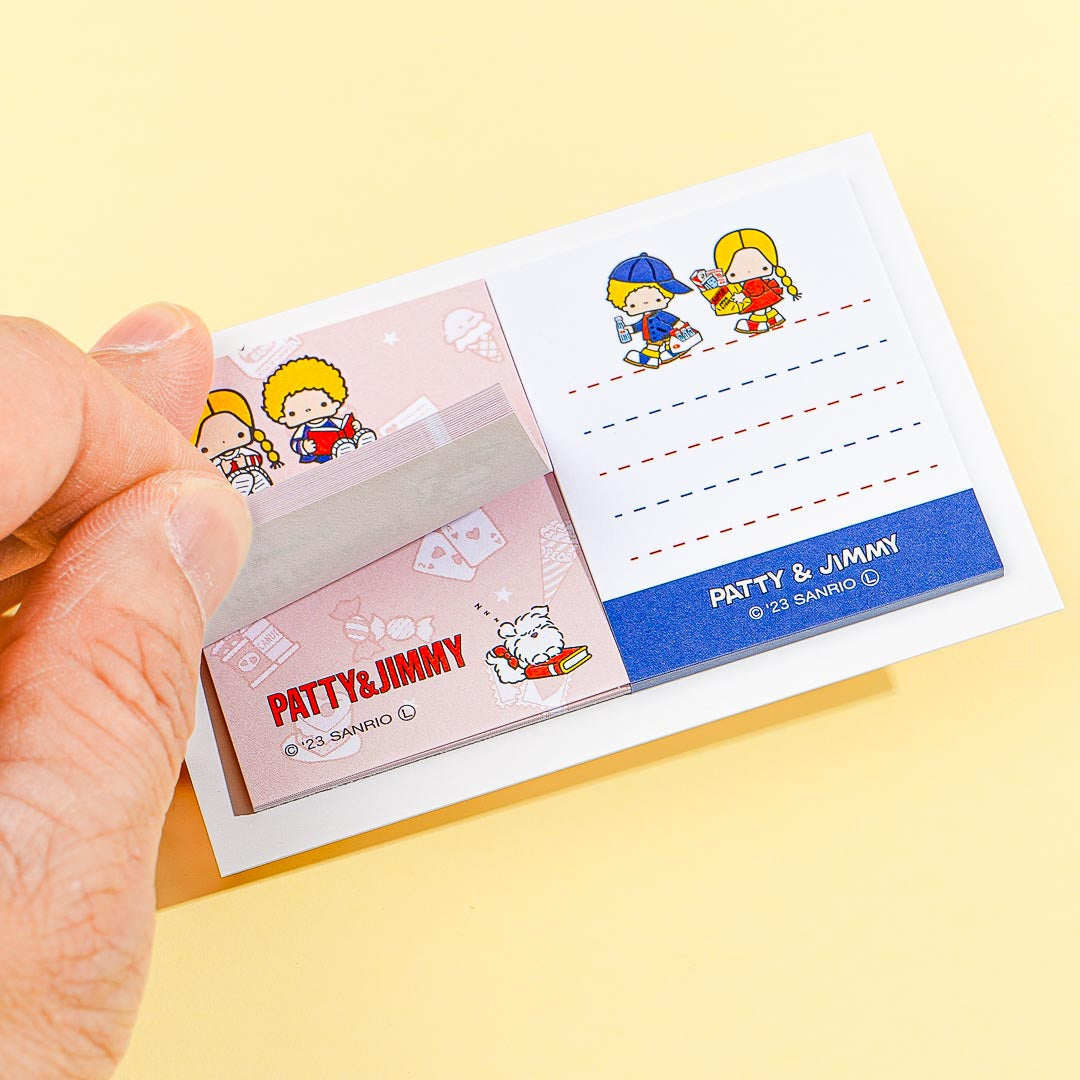 Add this super set of sticky notes to your stationery collection. It showcases prints of the retro Sanrio cuties, Patty and Jimmy! Use these sticky notes to write down important reminders. They come with a case that you can keep them in.