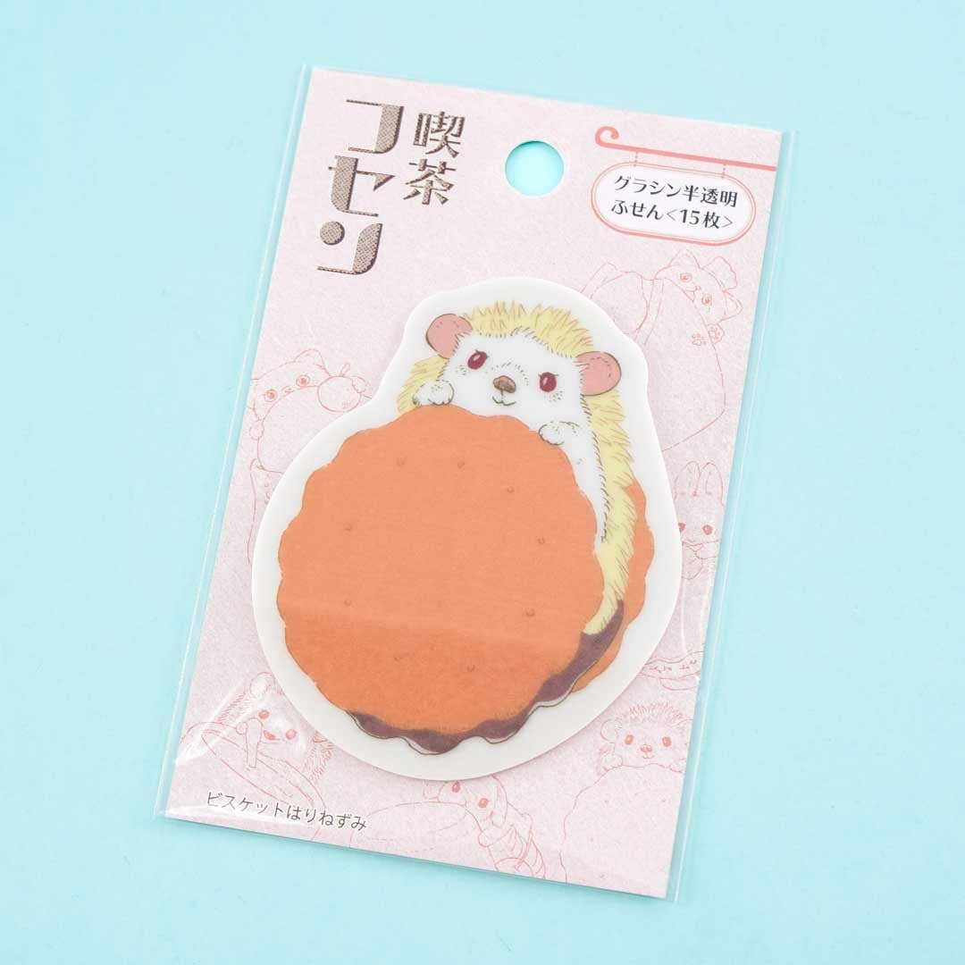 Use this super kawaii pad of die-cut sticky notes illustrated with a hedgehog holding a biscuit to jut down important notes! These sticky notes are made with translucent glassine paper. You can also use these sticky notes as bookmarks for the novel you're reading.