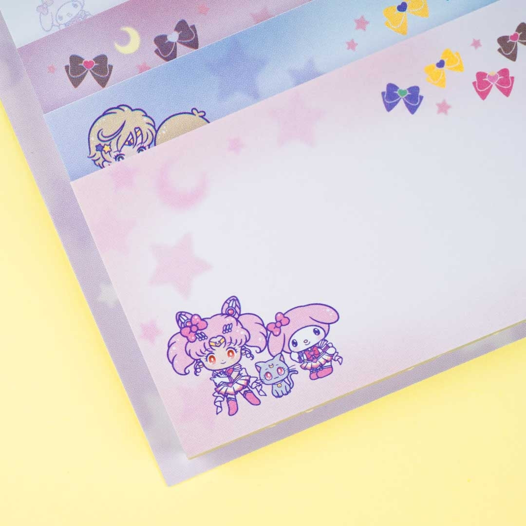 A cute pad of sticky notes featuring Sanrio Characters and Sailor guardians