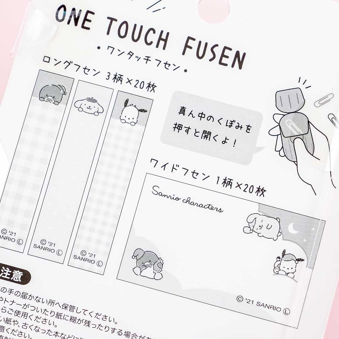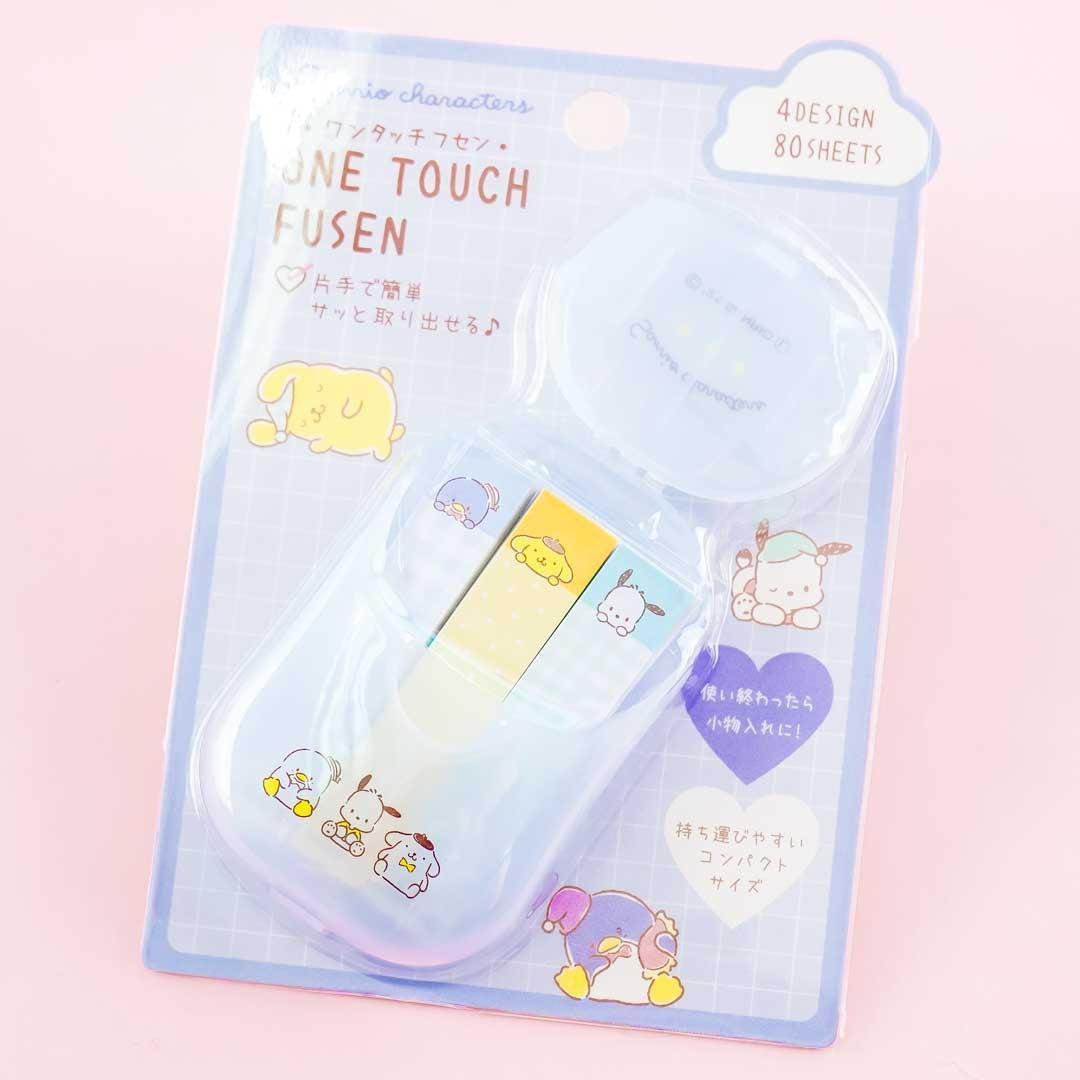 These kawaii sticky note tabs as well as the included “fusen” or one-touch carrying case are all decorated with illustrations of Hapidanbui — a group to which Tuxedosam, Pochacco, and Pompompurin belong. Use these sticky tabs to mark favorite pages on your novels.