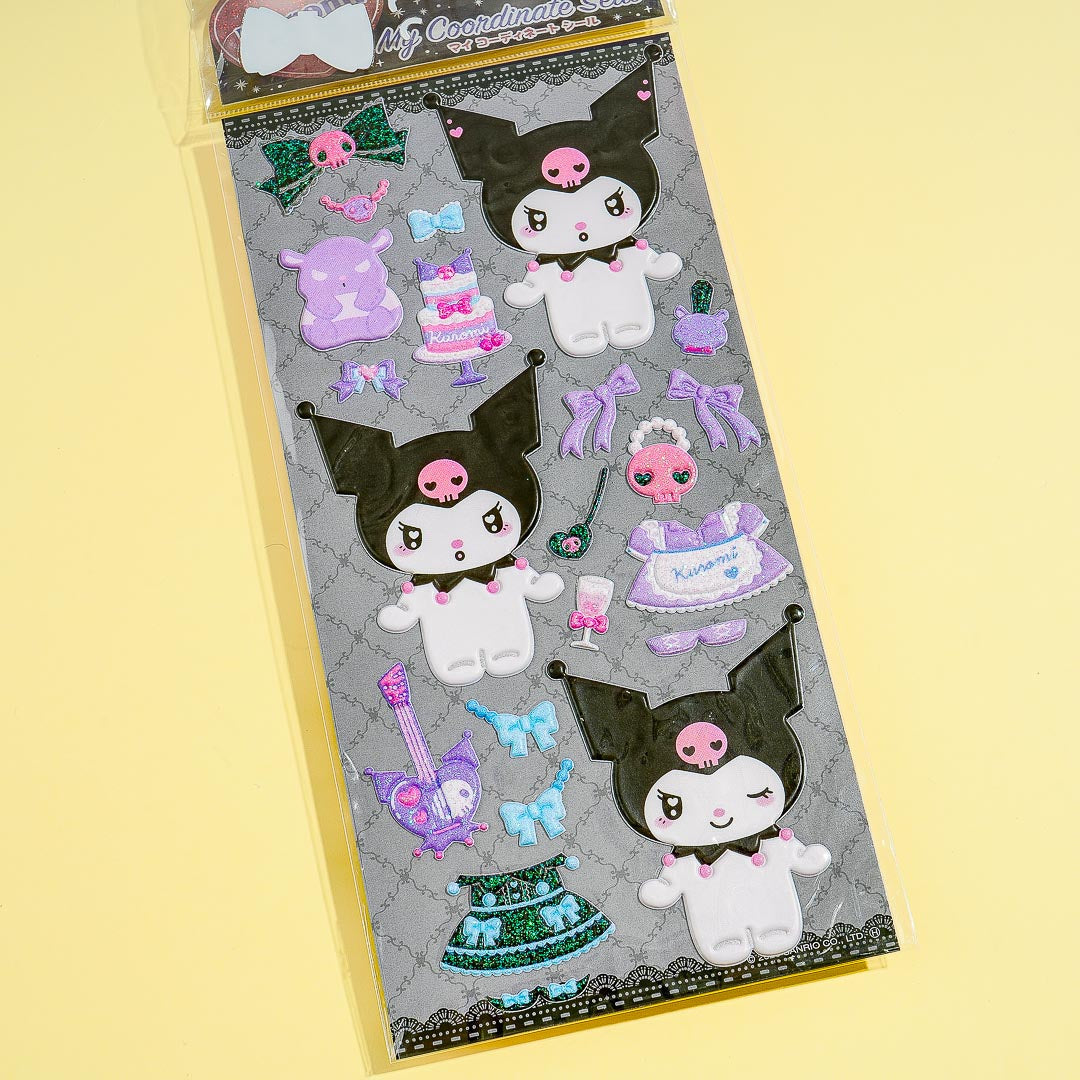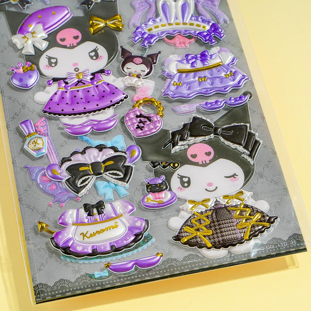 Have fun playing dress-up with this super cute sticker sheet! It features a Lolita-style Kuromi with puffy stickers shaped like dresses and accessories. You can mix and match the outfits however you like!
