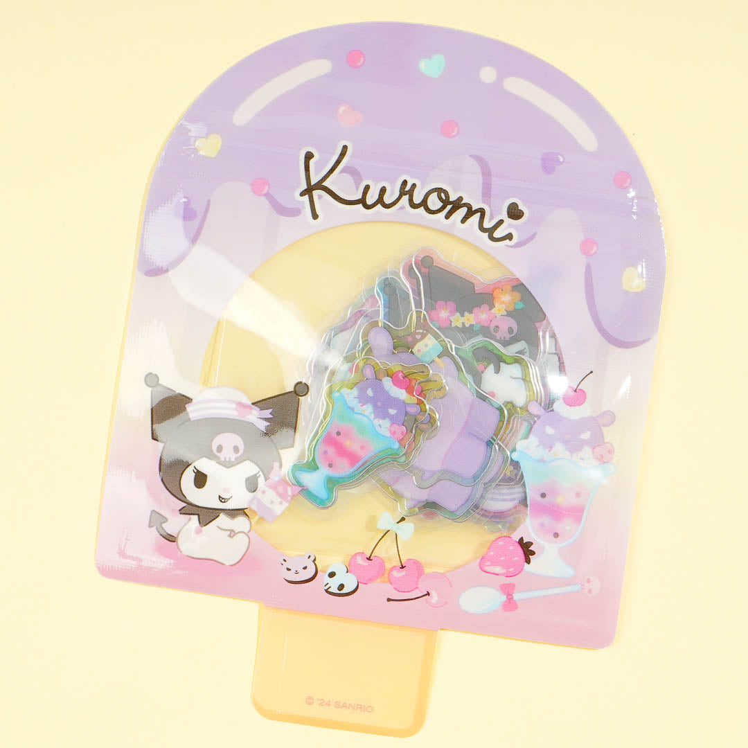 Kawaii-fy your notebook covers with these super cute semi-transparent stickers! The set features various die-cut illustrations of Kuromi spending a fun summer! These seal flakes also come in a special packaging that’s shaped like an iced popsicle!