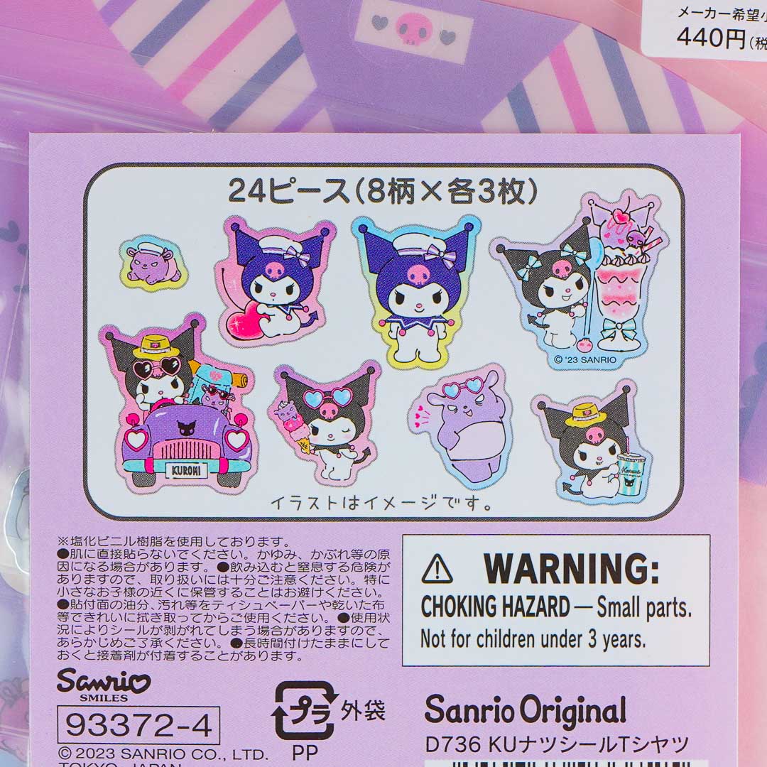 These kawaii sticker flakes come in a cute t-shirt-shaped zipper bag! They're die-cut stickers that feature illustrations of Kuromi in summer. You can use them to decorate your notebooks or school supplies.