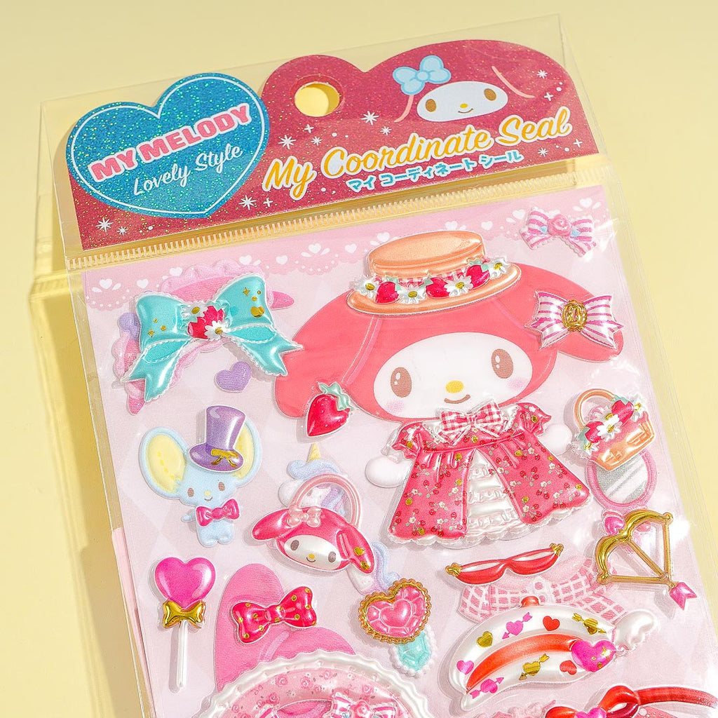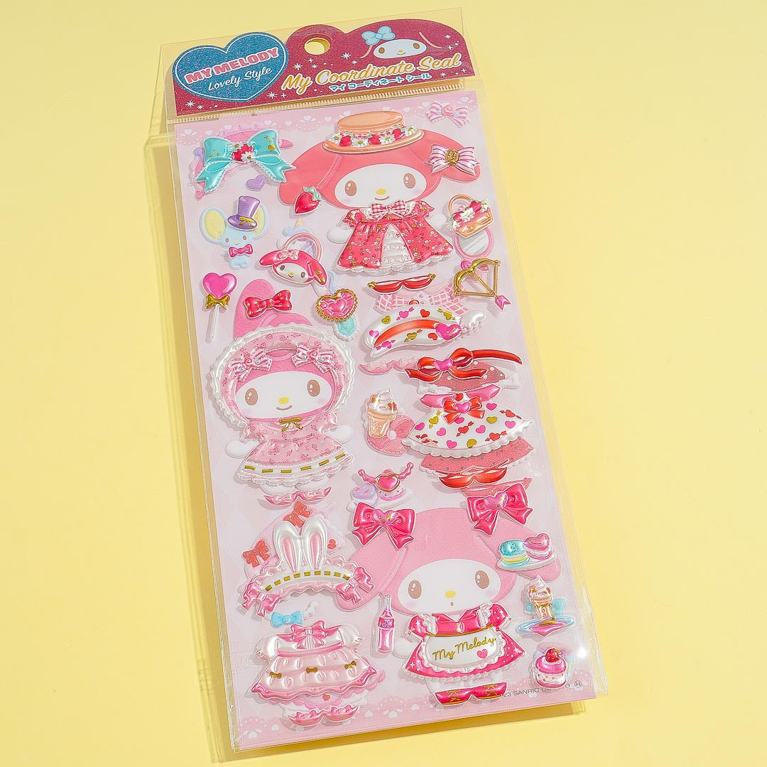 Dress up My Melody in super cute Lolita outfits using these puffy stickers! After playing, you can stick them on your desk organizers for a touch of kawaii.