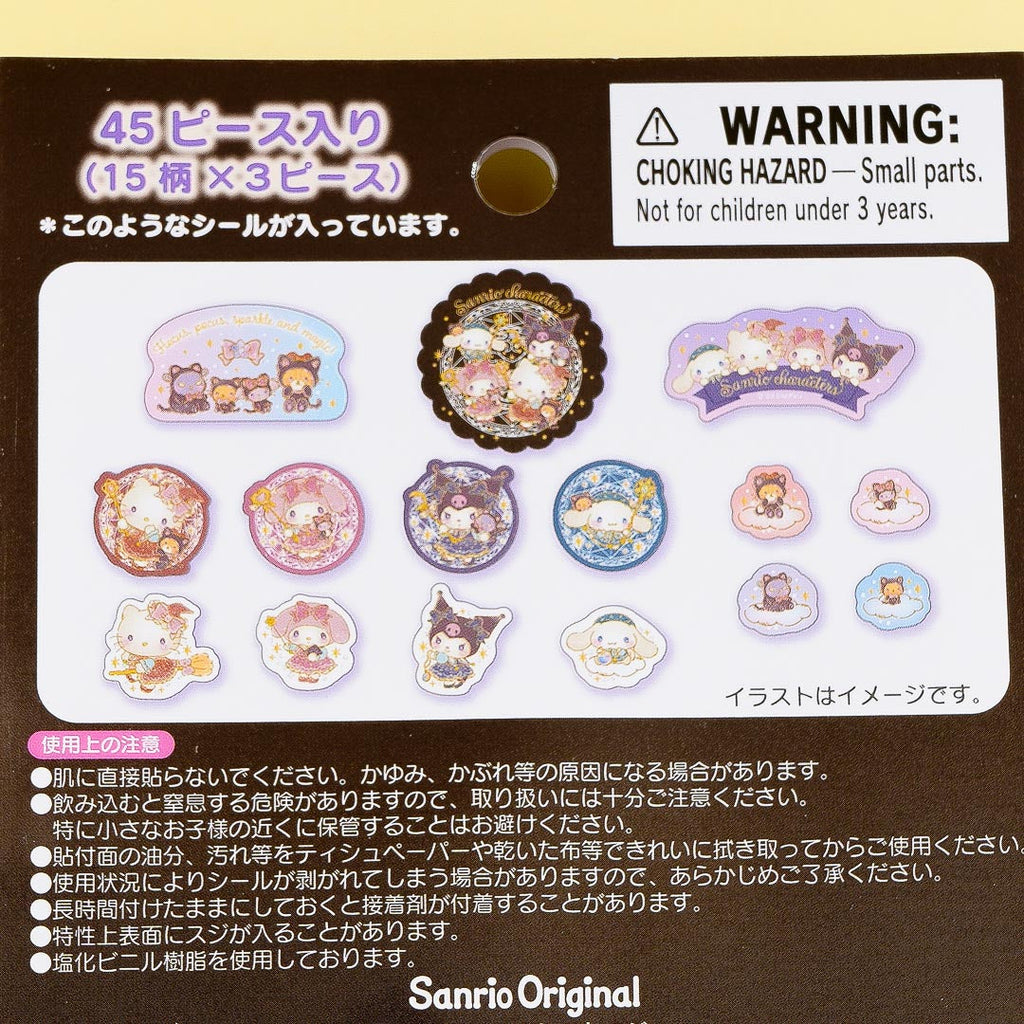 Use these kawaii stickers to decorate your notebooks and letters! The translucent and glittery design features Sanrio Characters looking like magicians.