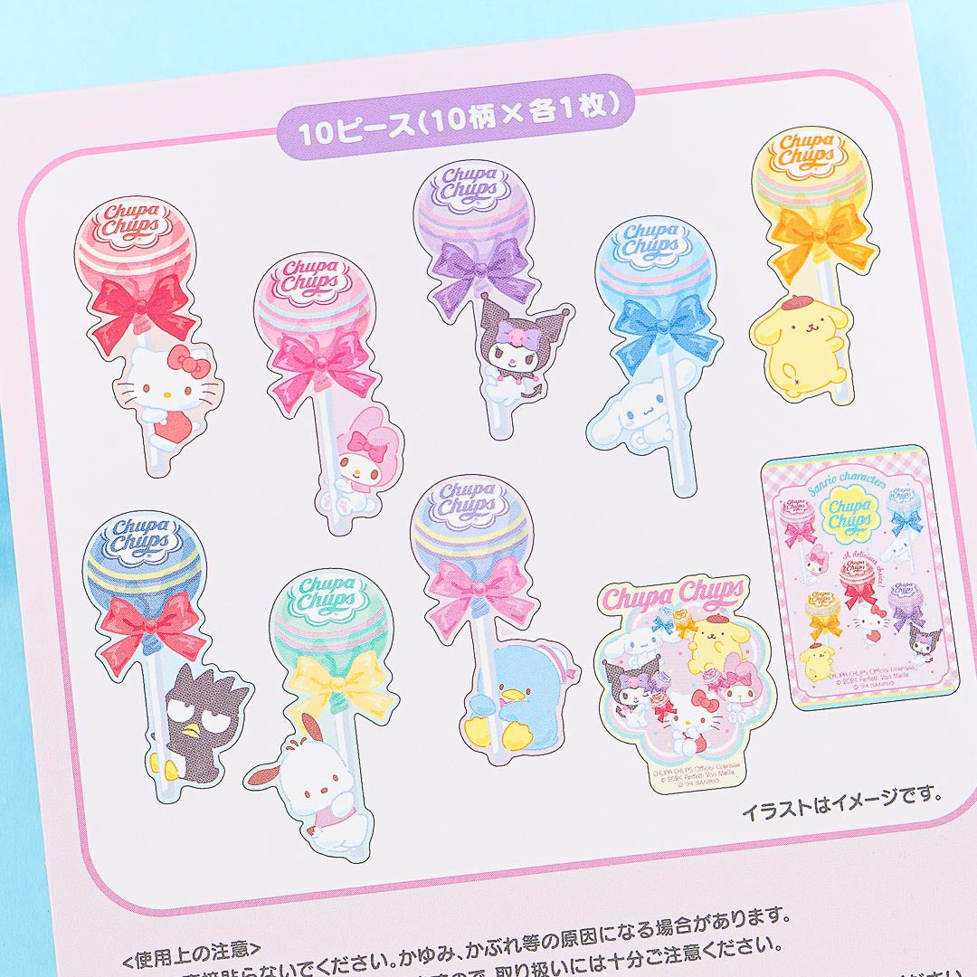 Decorate your notebook covers with these kawaii die-cut stickers! The set features prints of the popular Sanrio Characters hugging giant Chupa Chups lollipops. Add these cute seals to your stationery collection!