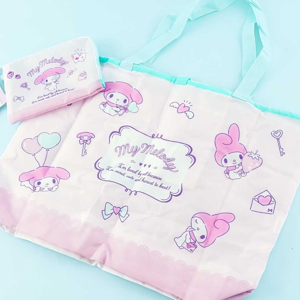 Carry this super cute My Melody eco bag to the supermarket to keep your groceries organized! This foldable tote bag comes with a carrying case and a removable ball chain that you can attach to your on-the-go bag!