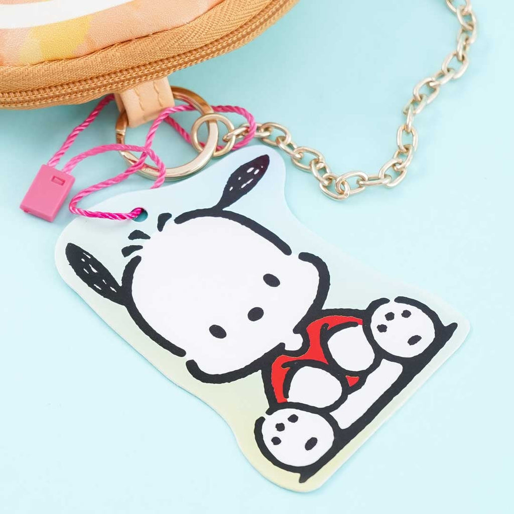 This cute frilly eco bag features a print of Pochacco holding up a mikan or an orange! Don't forget to take it with you on your next grocery run. It comes with a zippered storage case resembling an orange with a print of Pochacco. you can attach the case to the bag thanks to its hook chain.