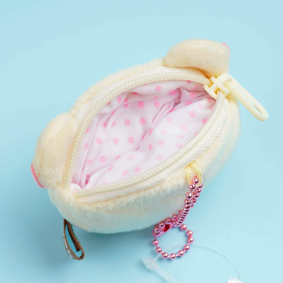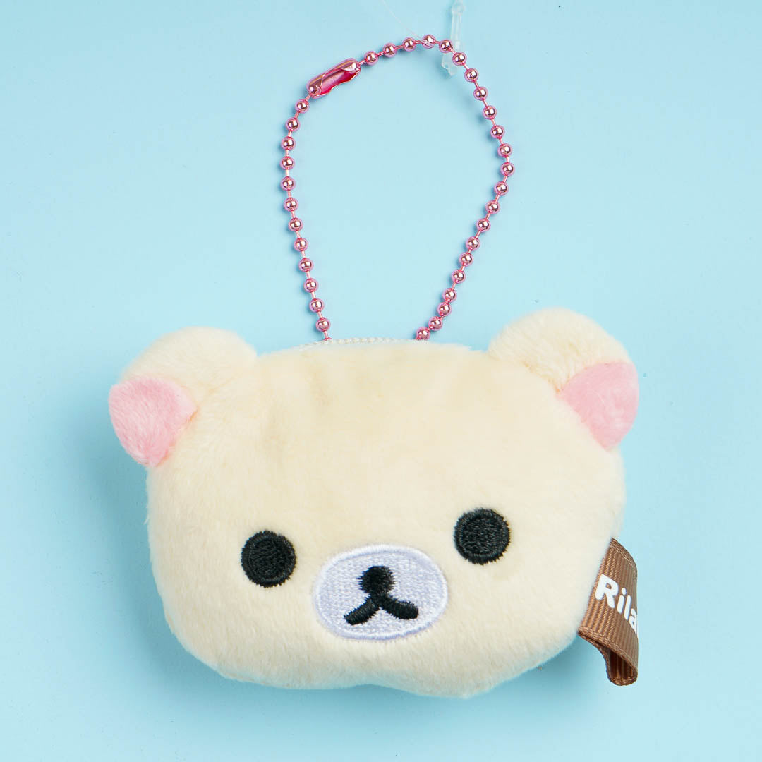 This kawaii Korilakkuma head plushie charm doubles as a coin case. Just open it's zippered compartment and store your loose change in there. You can attach this mini-sized charm to your bag with its removable ball chain.