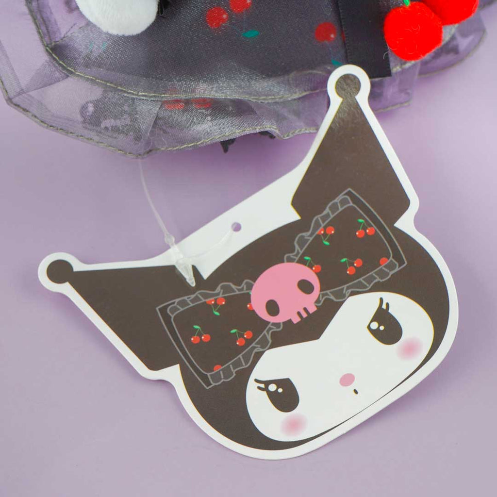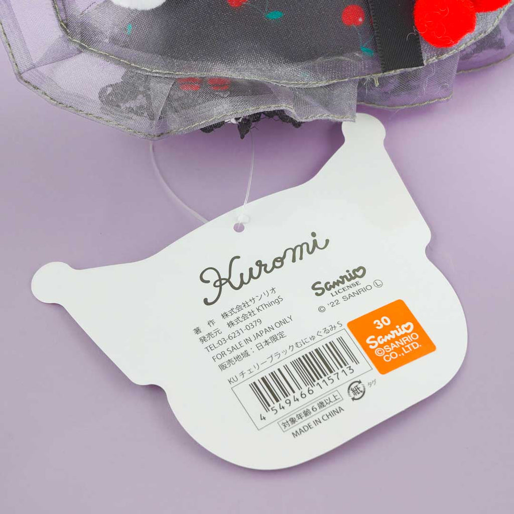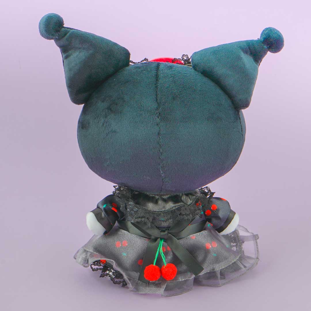 Have fun playing with this super cute Kuromi plushie! It comes in small size and is wearing a kawaii black dress with a matching bow that has prints of cherries all over!