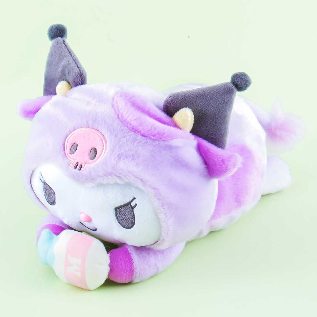 Cuddle together with this super cute Kuromi plushie! This medium-sized sweetie is wearing a kawaii cow onesie. It comes from the Sanrio Cow Zodiac plushie series celebrating 2021 which is the Year of the Ox.