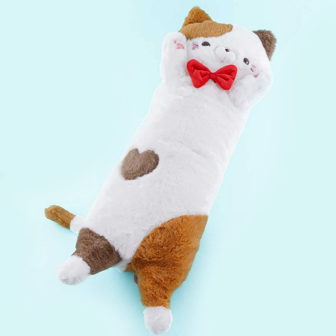 This super kawaii long calico cat plushie is waiting for you to give it hugs! Spend time napping together with this extra big nyanko or cat. It's made of soft polyester material.