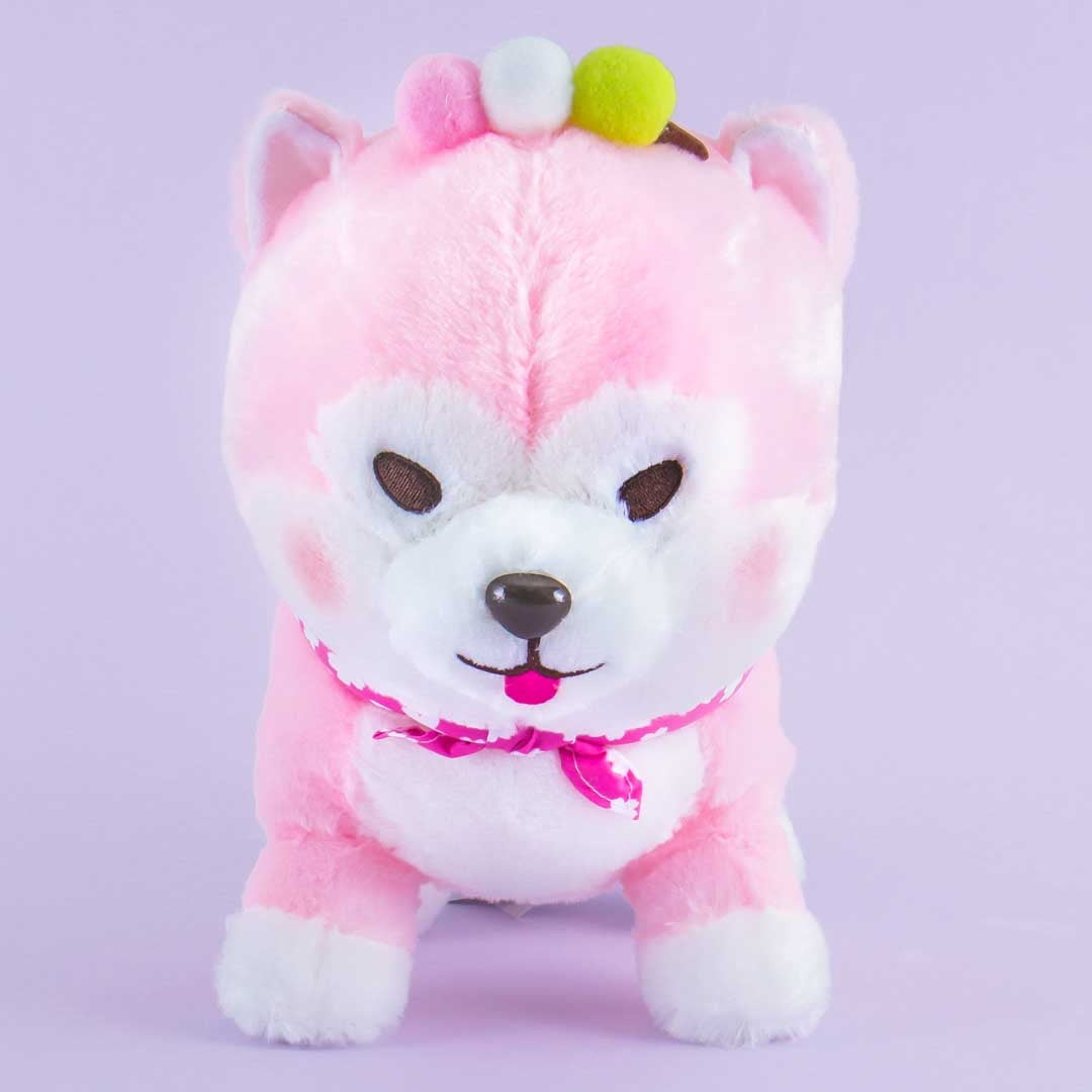 Make Masao the Shiba Inu your newest cherry blossom viewing buddy! His fur turns into blush in this sakura edition plushie of Mameshiba San Kyodai. This large-sized cutie wears a sakura patterned scarf and a dango or colored riceballs headband.