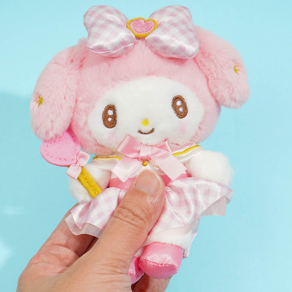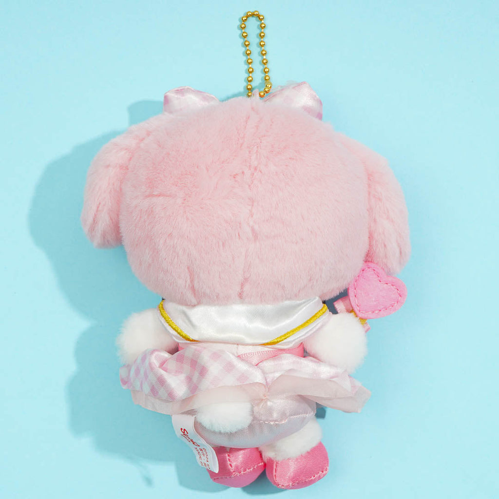 Kawaii-fy your favorite backpack with this super cute My Melody plushie charm! It's wearing a special satin dress with a matching ribbon and magic wand. This design comes from Sanrio's "I'll Make You Like Me More" collection. You can attach this to your bag using the removable ball chain.