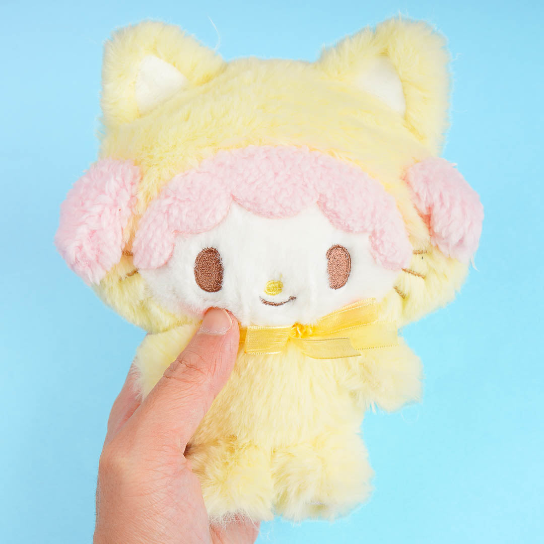 Play dress-up together with this kawaii My Sweet Piano plushie from the Fuwakuta series. It's wearing a pastel-colored cat onesie! This cutie can sit on its tush thanks to the bean bag fillings in its bottom.