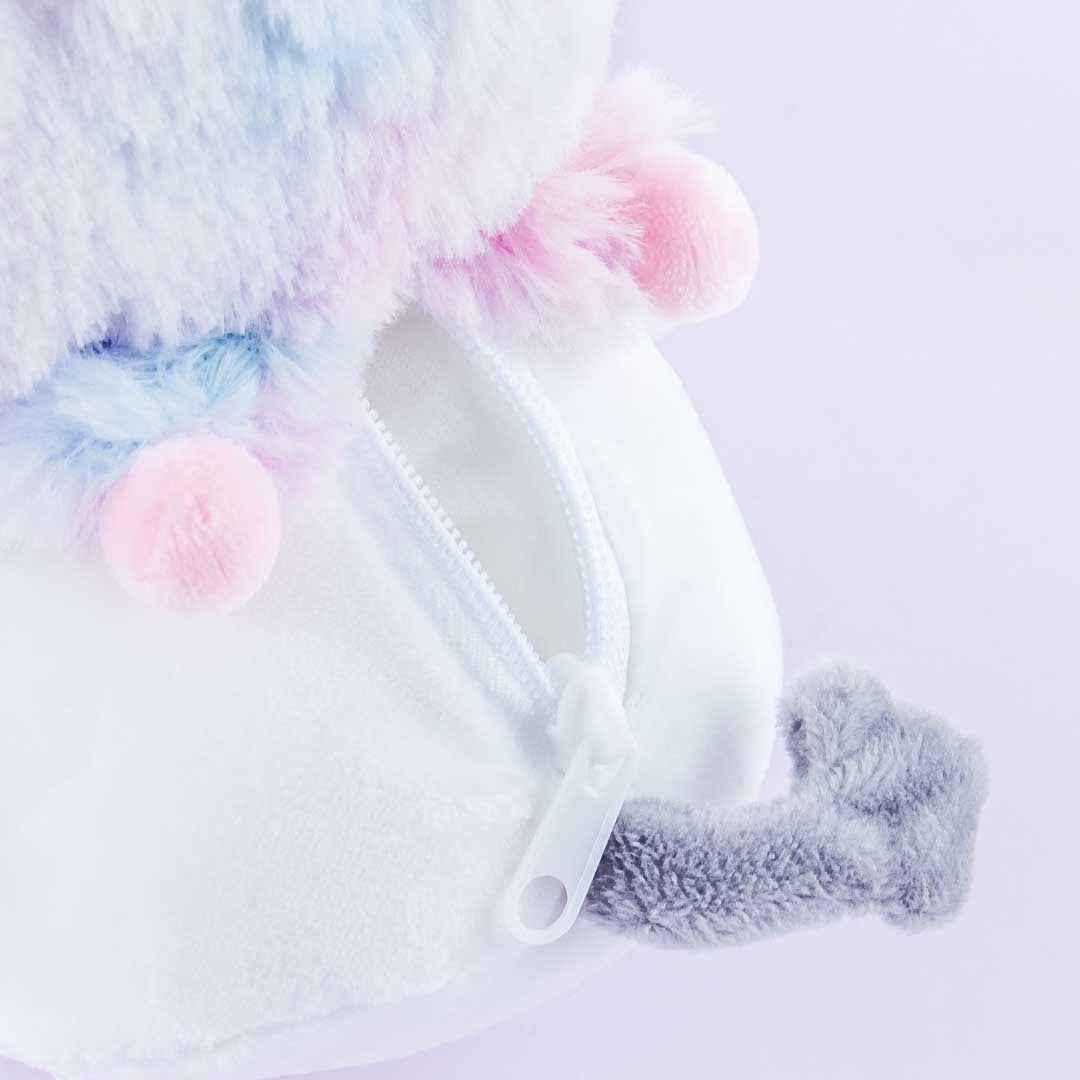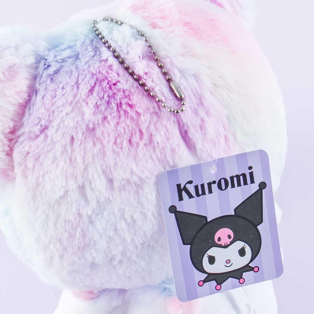 This super cute Kuromi plushie has been rainbowed with pastel colors! You can cuddle with this cutie as it is super fluffy! It also comes with a zipper on its back for your small trinkets and a removable ball chain!