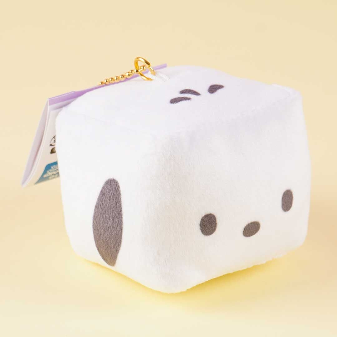 Go traveling together with this cute cube-shaped Pochacco plushie charm. You can attach it to your favorite bag with its removable ball chain!