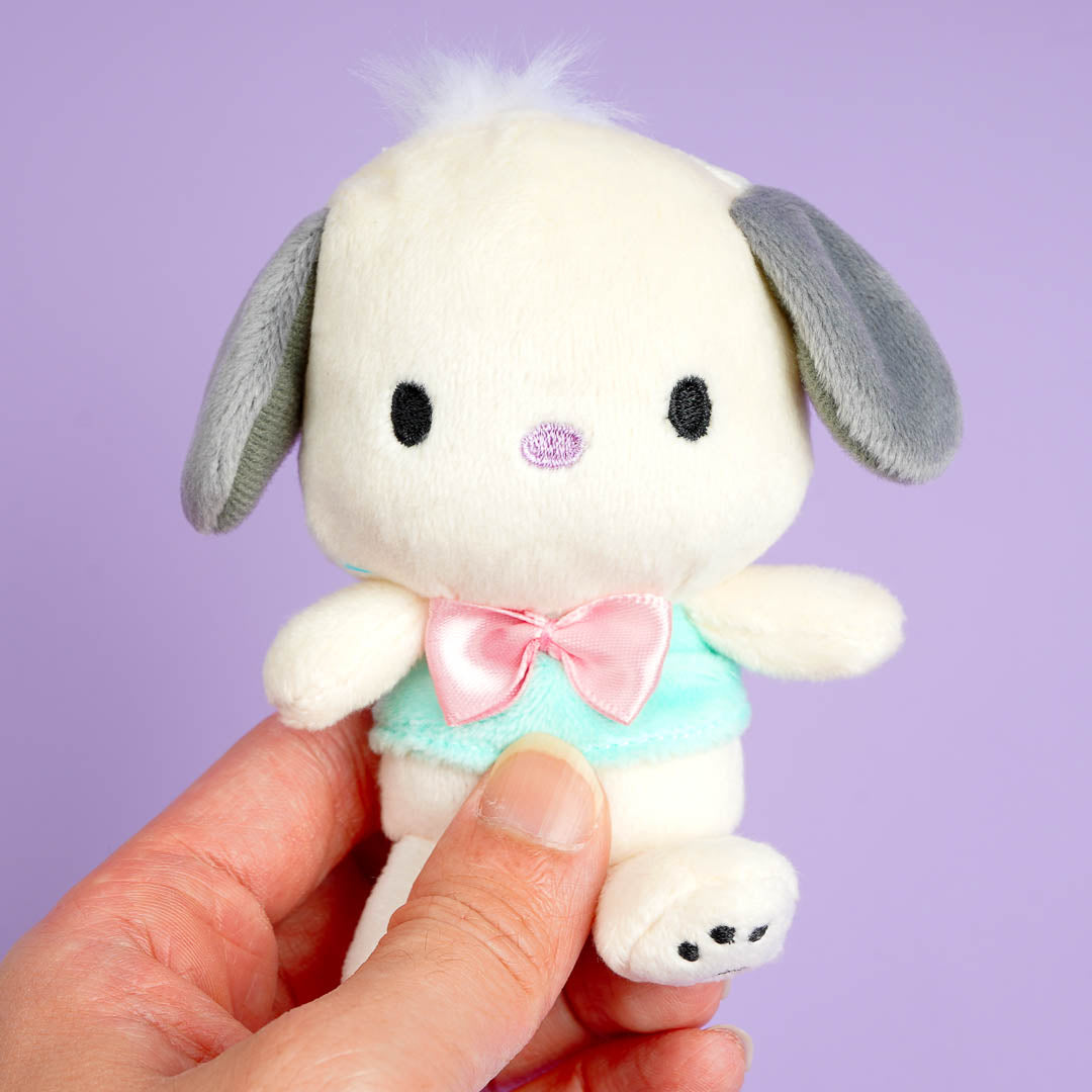 Spread kawaii vibes when you attach this cute Pochacco plush charm to your bag! It's wearing a bright bowtie and has a cute purple nose. This colorful design is inspired by the Ulzzang style from Korea.