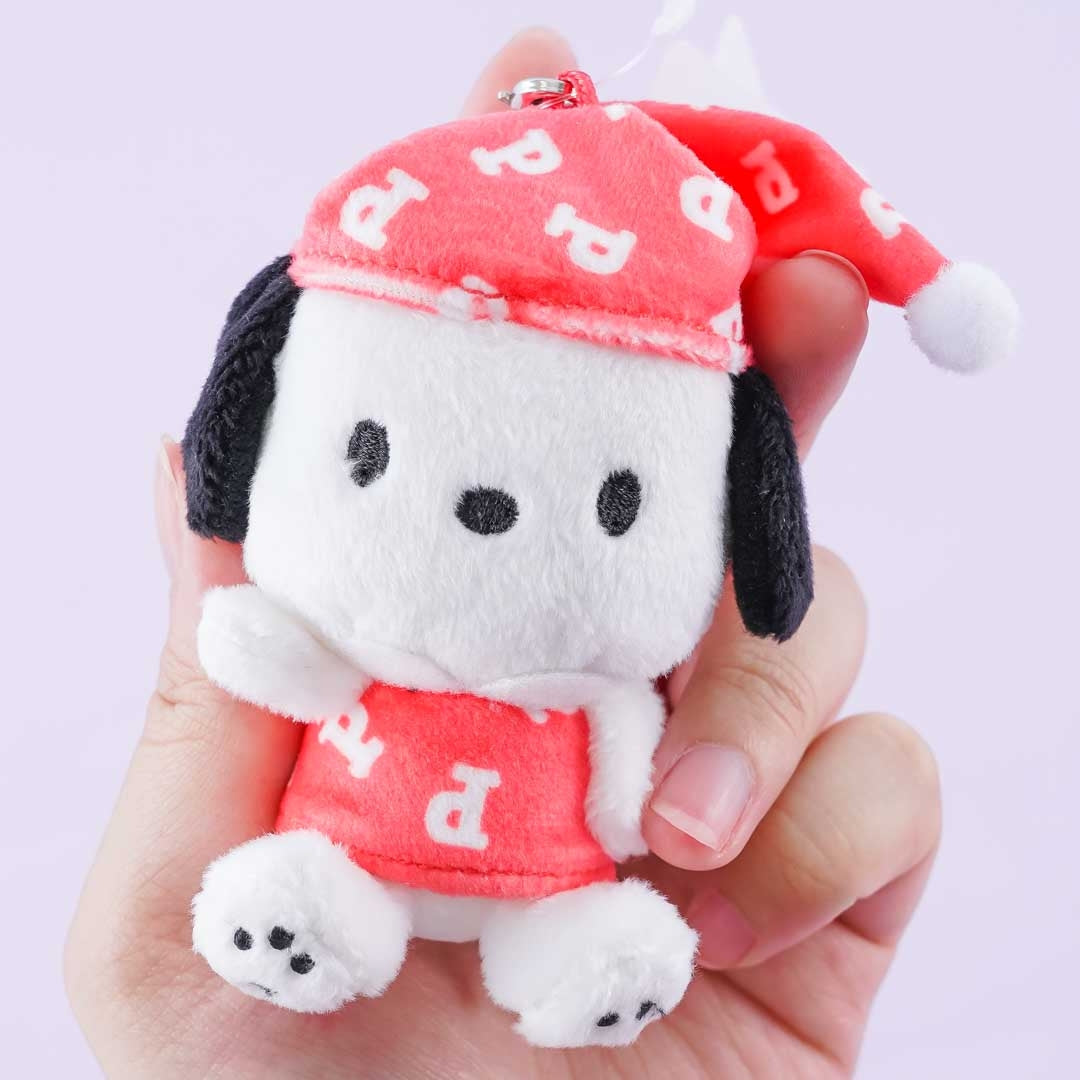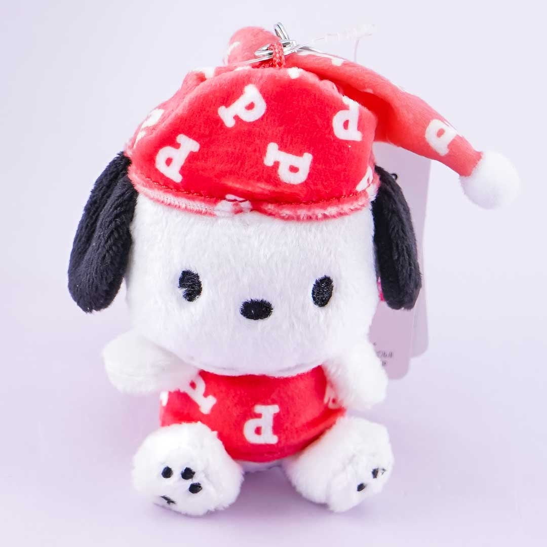 This kawaii Pochacco character plushie charm is wearing pajamas and a matching sleep hat printed with lots of letter “P” all over! Take this mini-sized fluffy cutie with you everywhere by hanging it on your backpack with its included carabiner.