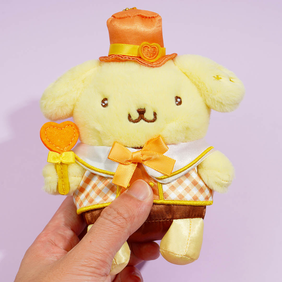 This super cute Pompompurin plushie charm comes from Sanrio's "I'll Make You Like Me More" series. It's wearing a super cute gingham outfit with a matching hat and magic wand! Attach this medium-sized charm to your favorite bag using its removable ball chain.