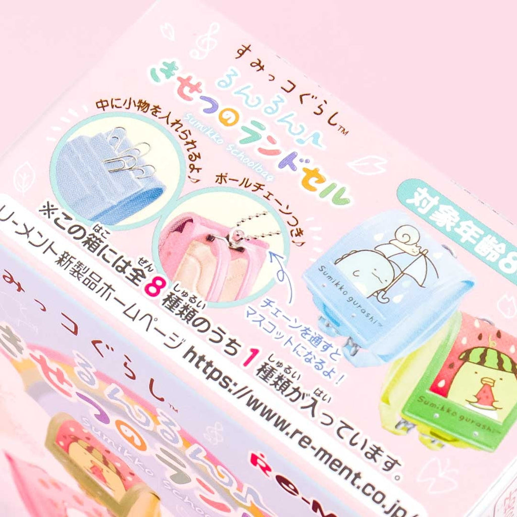 Attach this super kawaii Sumikko Gurashi school bag miniature to your favorite backpack with its detachable ball chain! You can open and close this kawaii Sumikko Gurashi-themed school bag collectible. It comes from the Sumikko Gurashi Schoolbag series. The collection features Shirokuma, Tonkatsu & Ebifurai no Shippo, Tokage & Nisetsumuri, Penguin, Neko, Penguin & Tapioca, Tokage, and Shirokuma & Penguin. Each replicated mini item is highly-detailed and comes with a free piece of gum.
