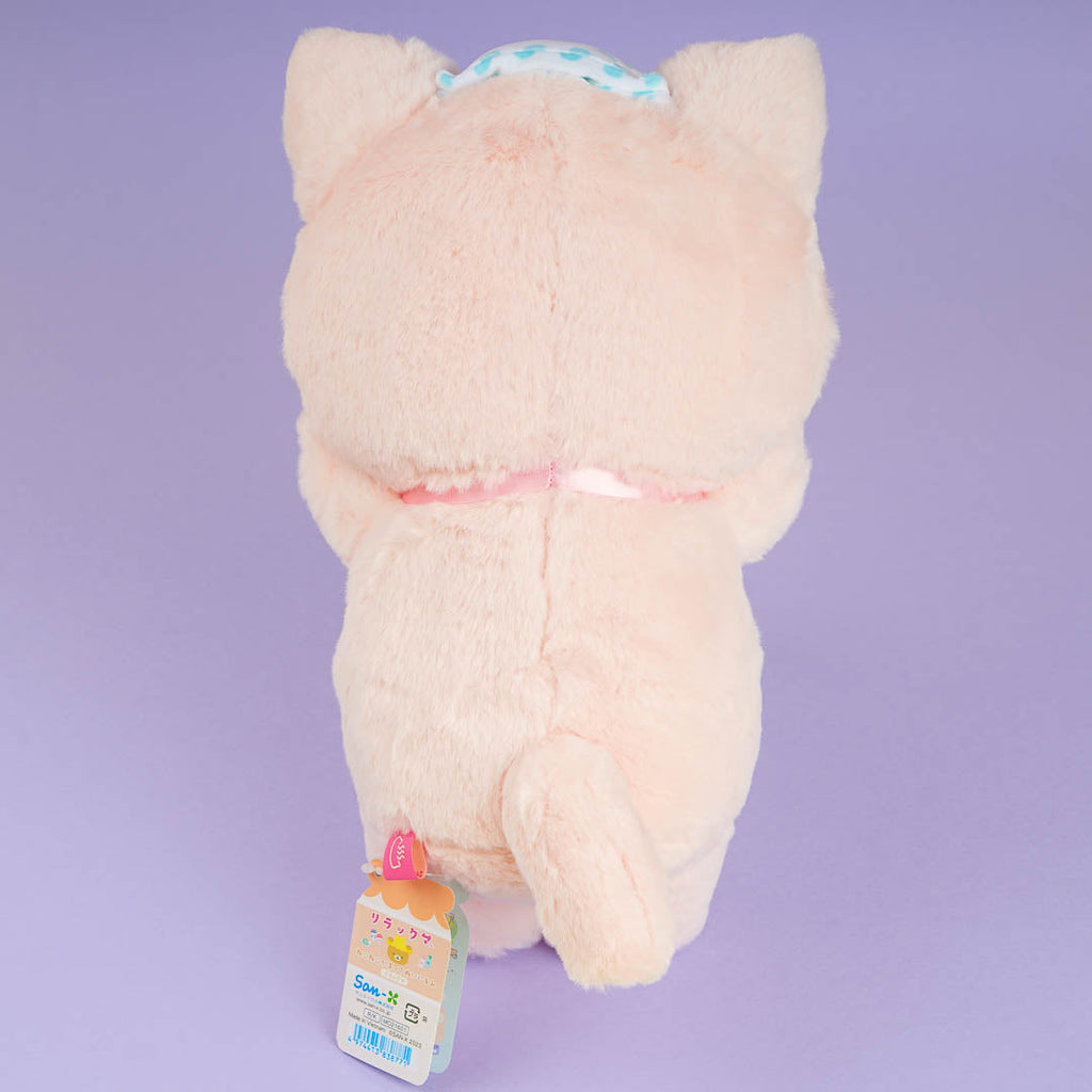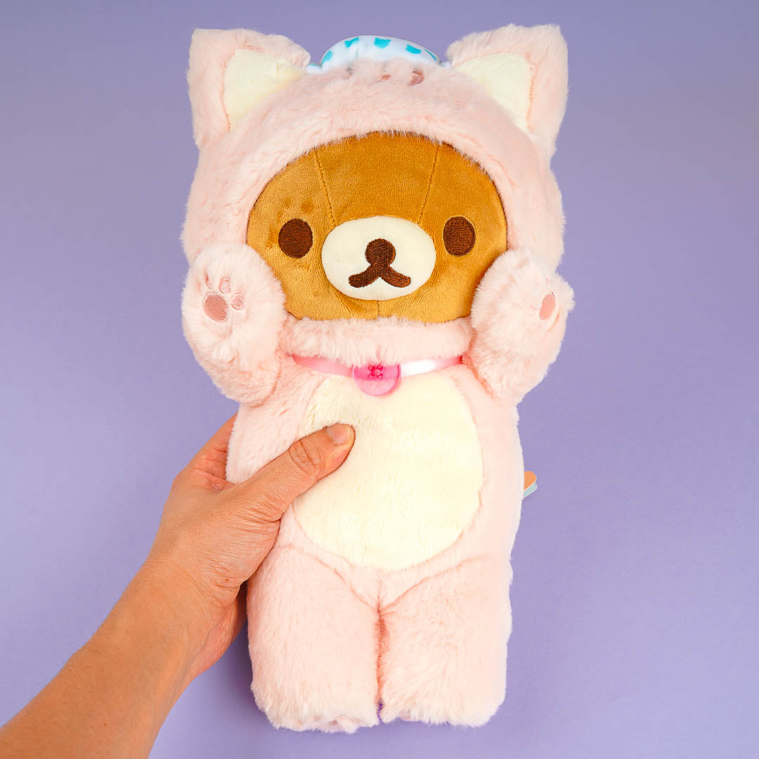 Snuggle together with this super kawaii Rilakkuma plushie dressed as a cat. This medium-sized stuffed toy comes from the Rilakkuma Relaxing Cat series. It's the perfect nap-time companion!
