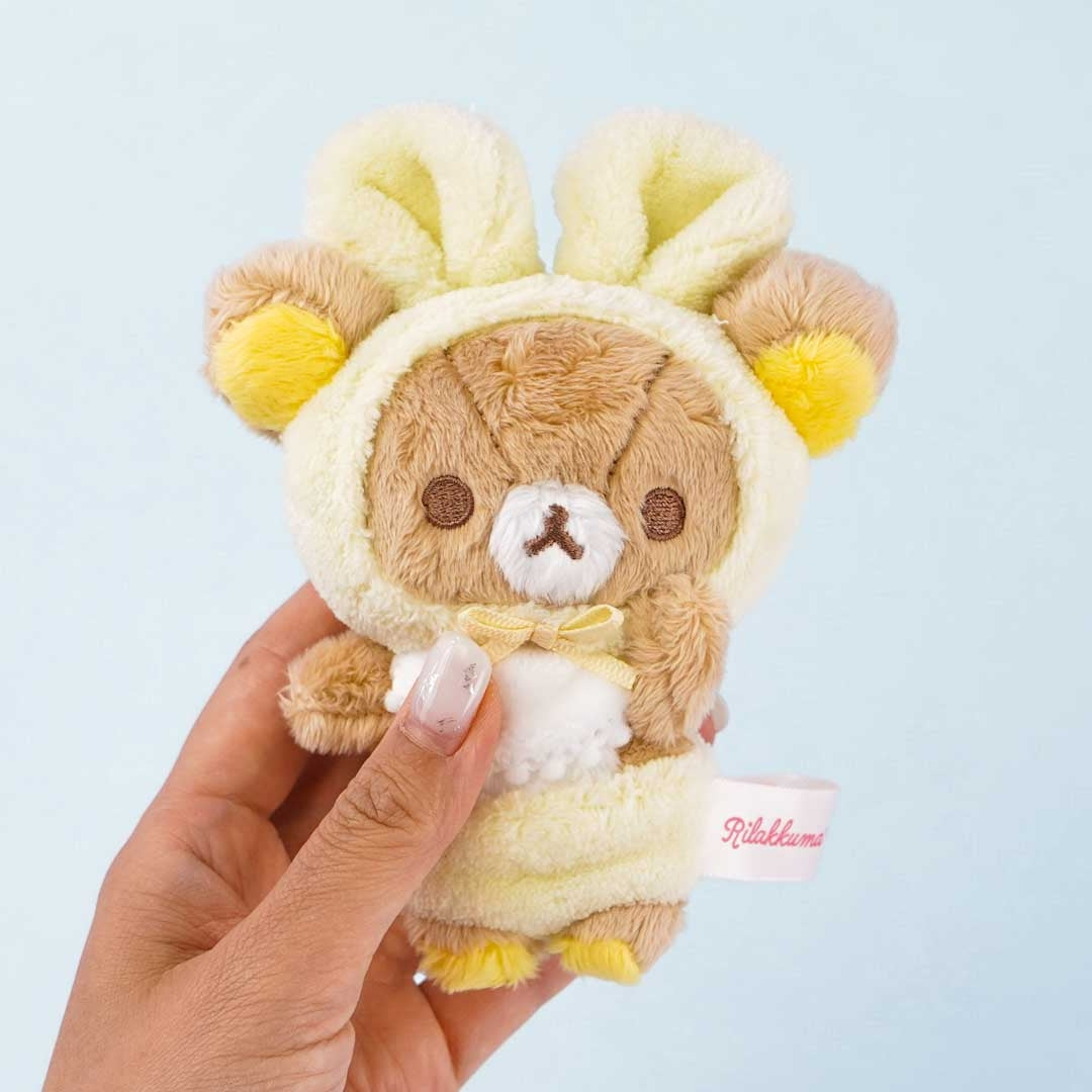 A cute medium-sized Rilakkuma plushie charm in a baby bunny costume