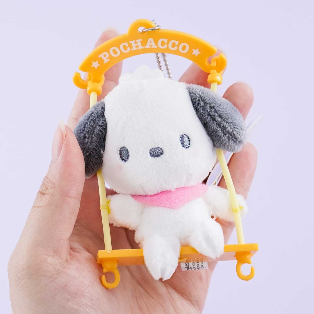 Decorate your favorite bag with this super kawaii Pochacco swing plushie charm! It has a removable ball chain so you can take it anywhere you go. You can also attach this charm to other Sanrio Characters swing plushie charms!