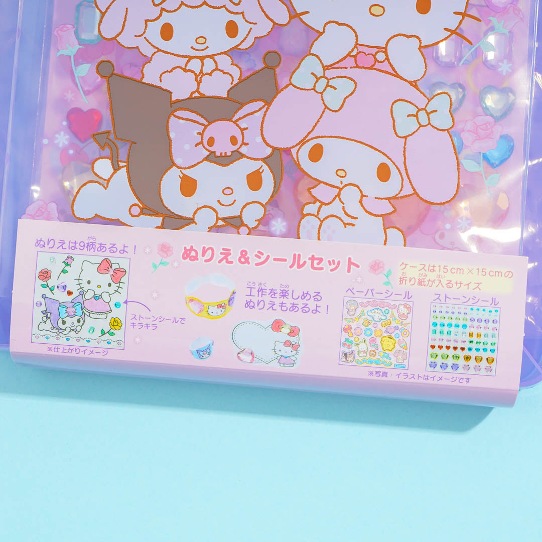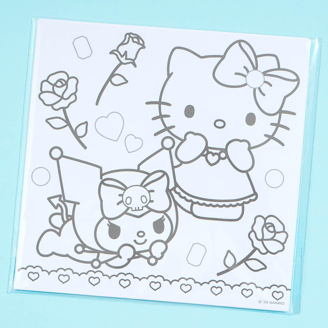 Spend time having fun playing with this cute coloring set. It showcases prints of flowers and Sanrio cuties like My Melody, Hello Kitty, Kuromi, and My Sweet Piano. This coloring set also has fun stickers you can use to decorate the coloring sheets.