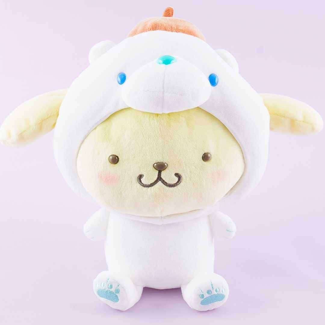 Snuggle with this Pompompurin character plushie wearing a kawaii polar bear onesie! This medium-sized comes from the Sanrio Ice Friends series! The hood of Pompompurin’s costume is removable.