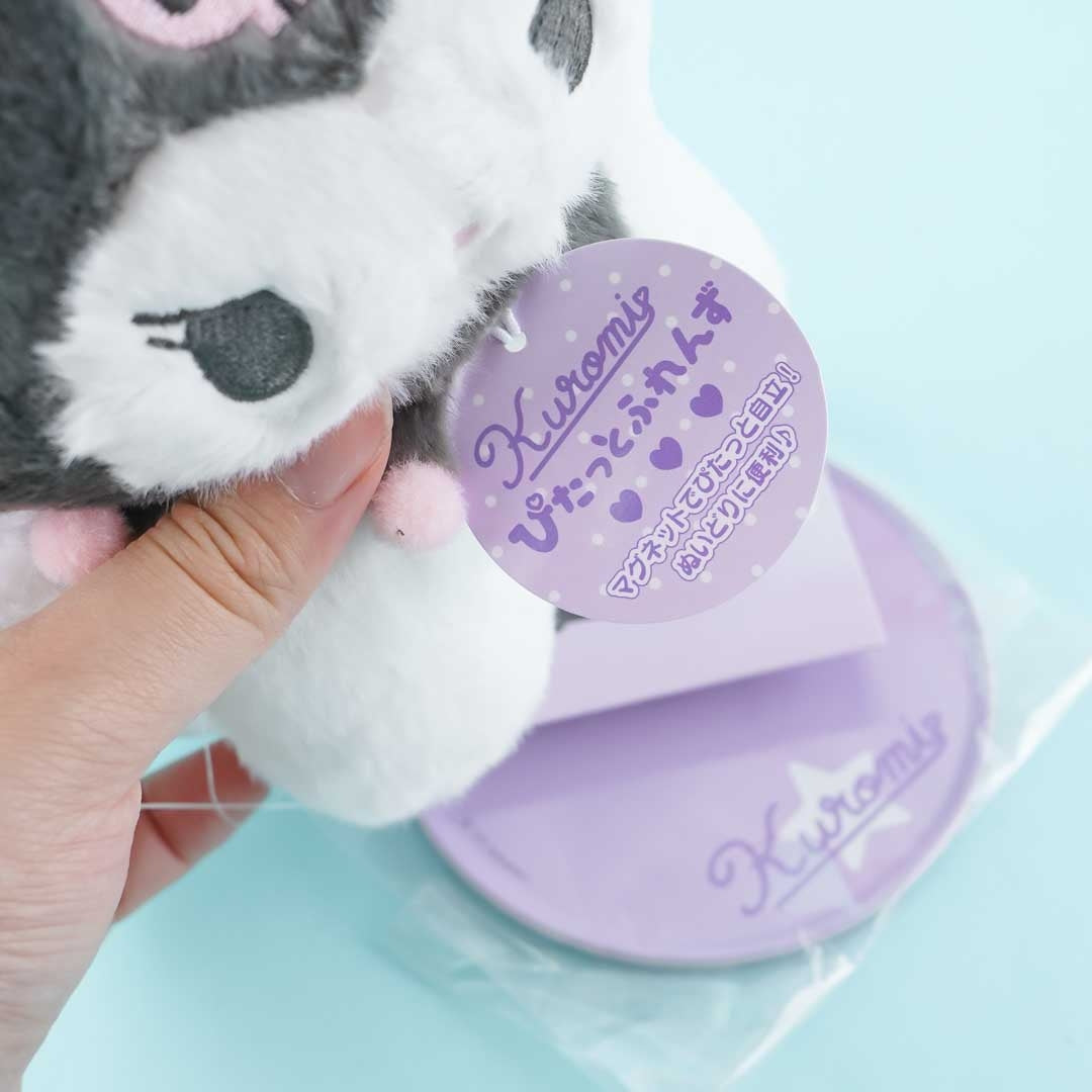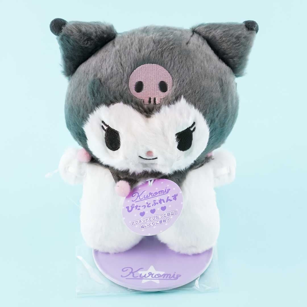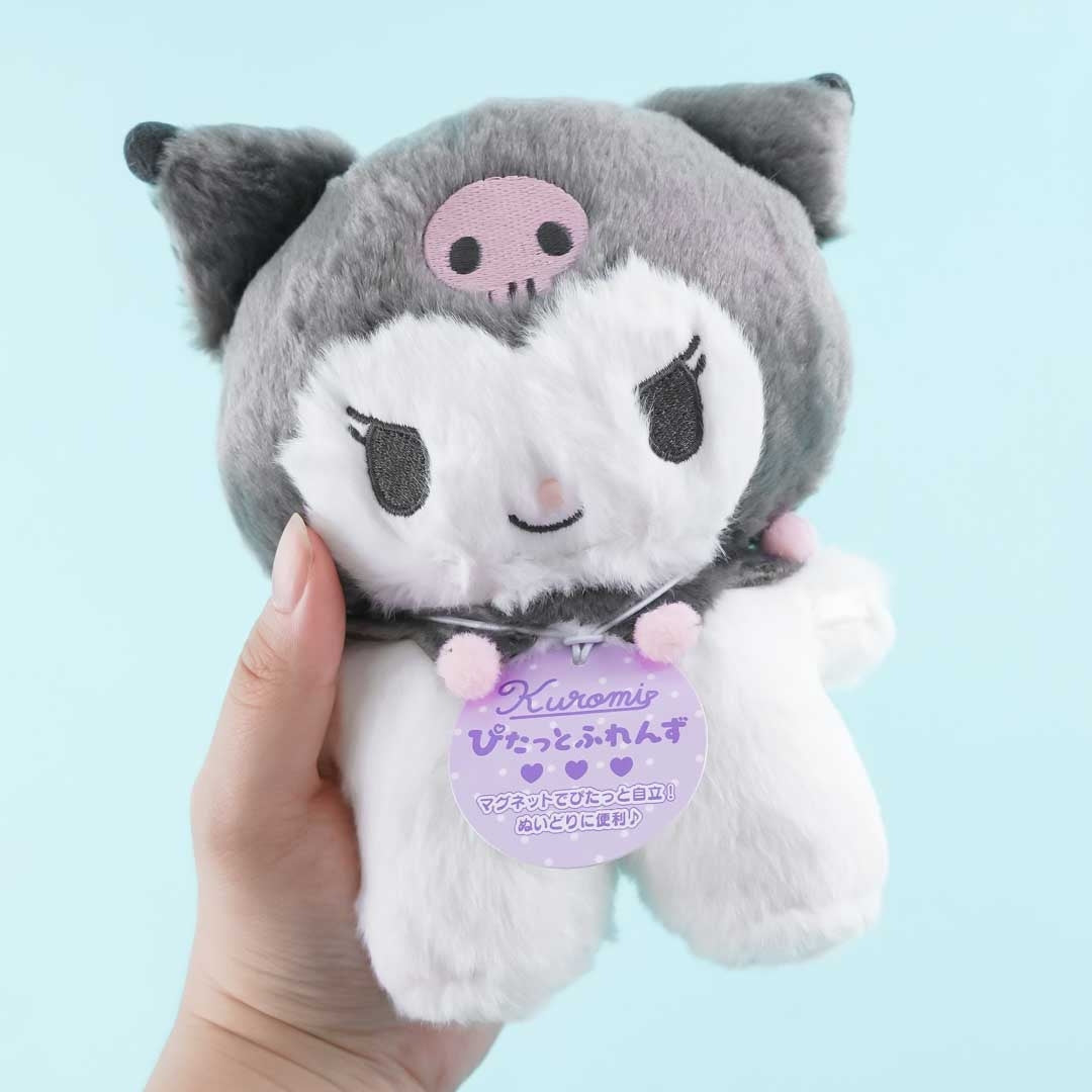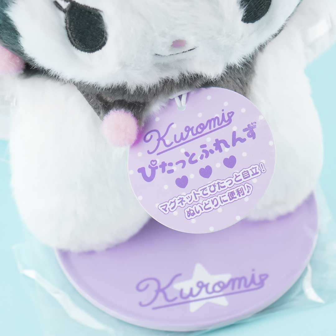 Have fun playing with this kawaii Kuromi standing plushie! This super-soft cutie comes in medium size and is part of the special “Pitatto Friends” series — a line of standing plush dolls meant for photoshoots. This plushie can be dressed up and can stand steadily on the base because of the magnets inside its feet.