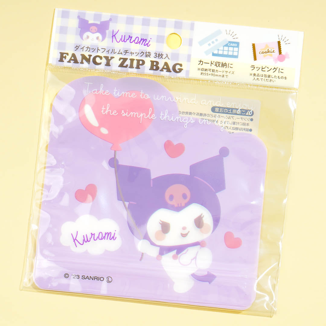 Store your candies in this set of kawaii resealable bags! It features a die-cut design with a cute illustration of Kuromi holding a heart-shaped balloon.