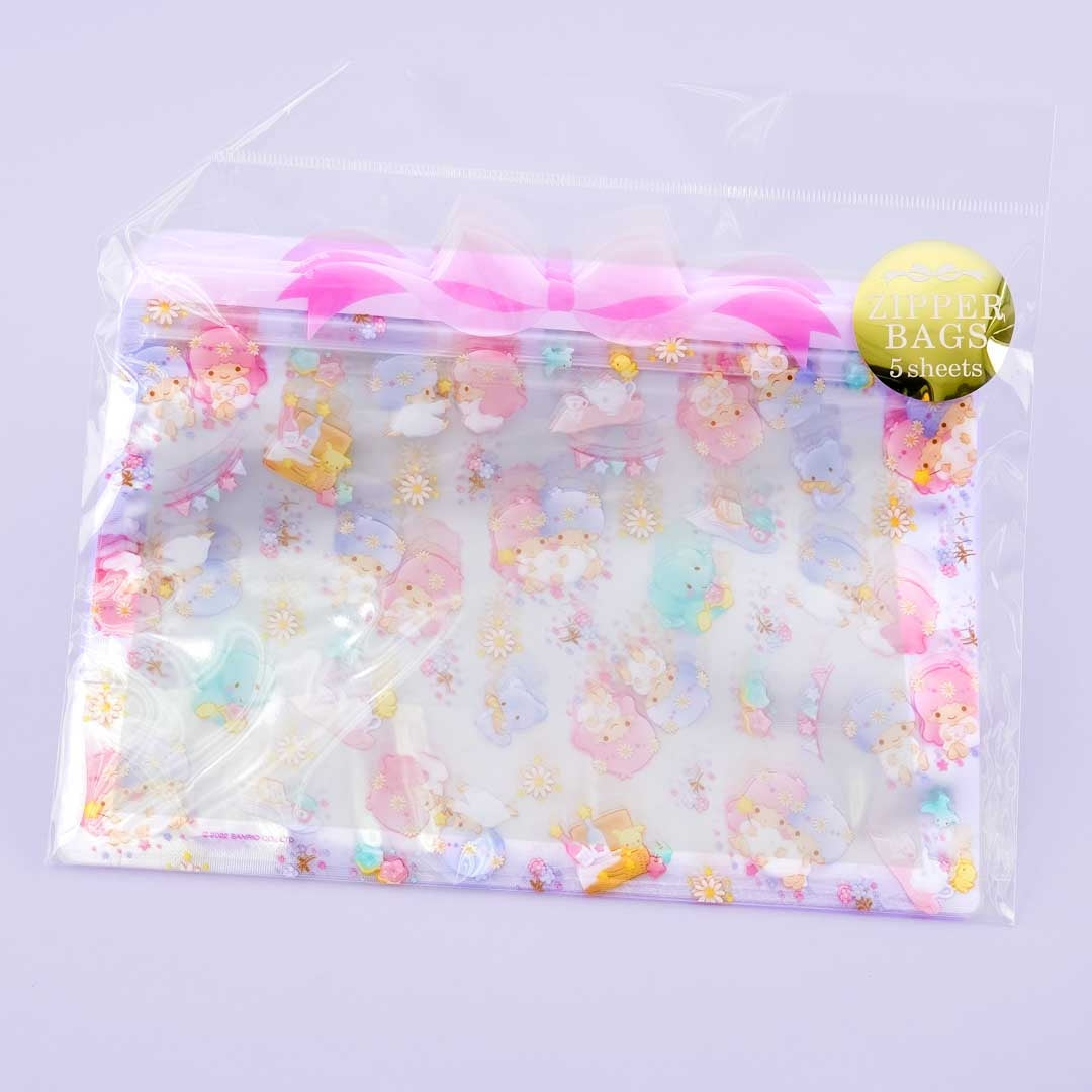 A set of resealable storage bag featuring the Little Twin Stars and spring flowers