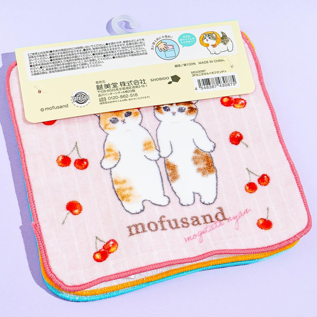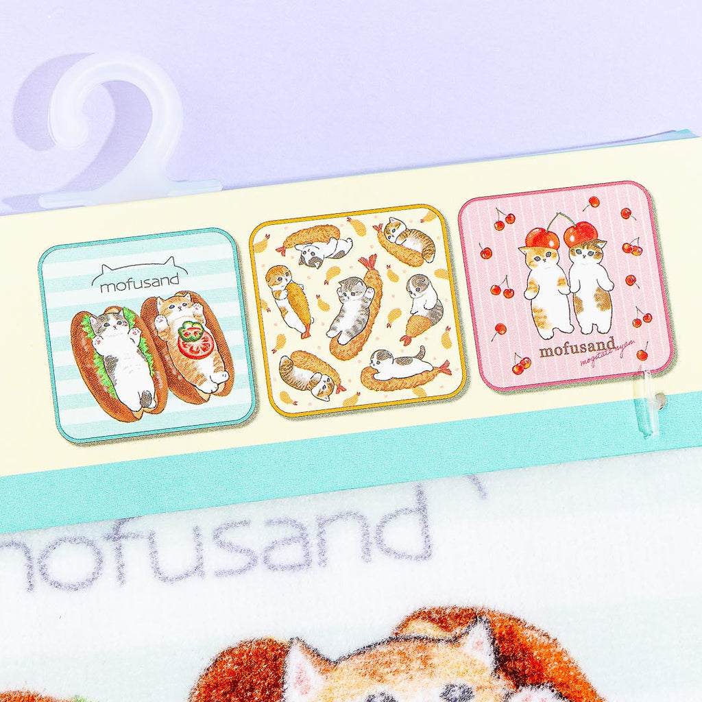 Use these kawaii mini towels to keep sweat off your face or to dry your hands after washing! The set is decorated with super cute prints of Mofusand cat characters having fun and dressing up in various food items like tempura, sandwiches, and cherries.