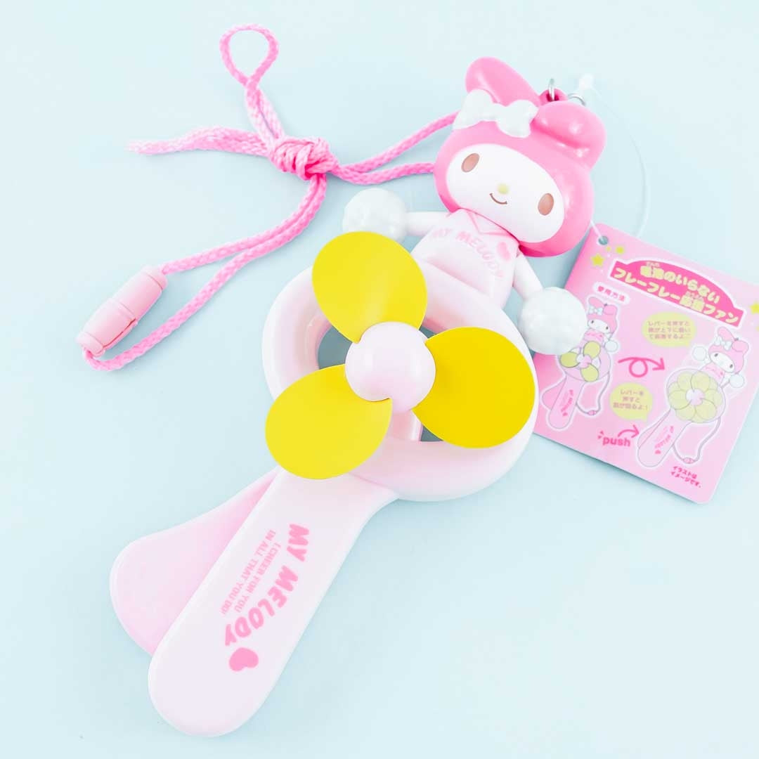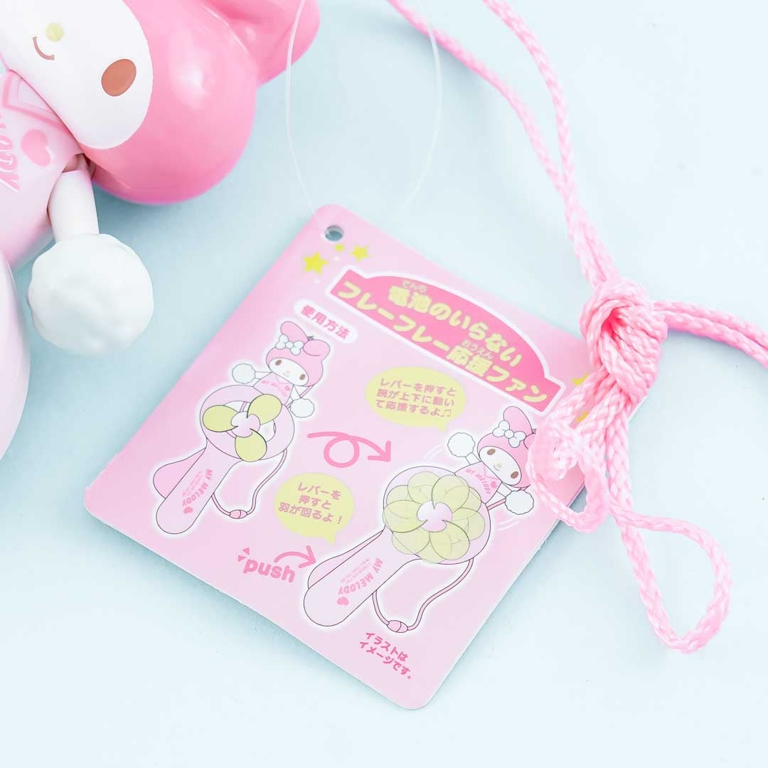 Keep cool during warm days by using this super cute fan with a My Melody cheerleader decor! You don't need batteries for this fan to operate - all you need to do is push the handle for it to work. Watch My Melody's arms shake when you push the handle. This fan also comes with an adjustable strap so you can bring it around or hang it anywhere you'd like.