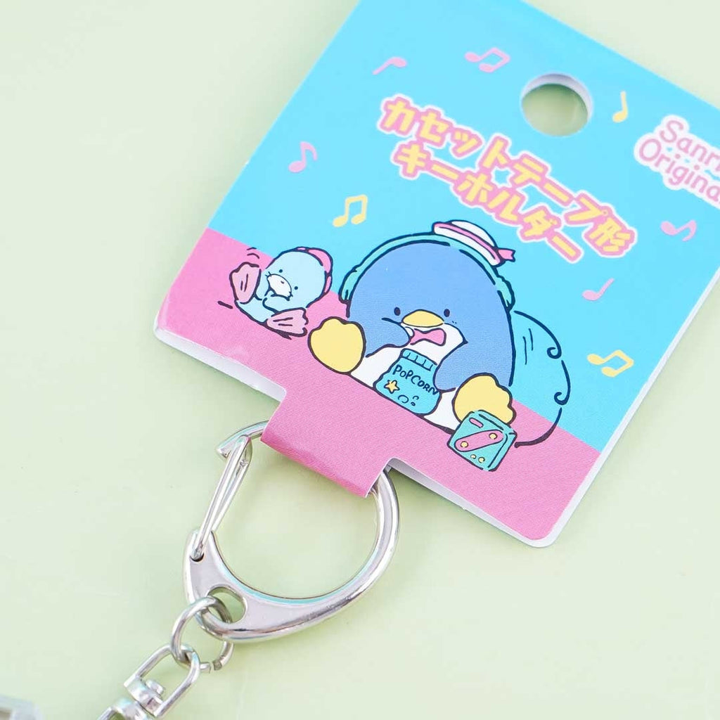 A super cute cassette-shaped charm with prints of Tuxedosam listening to music