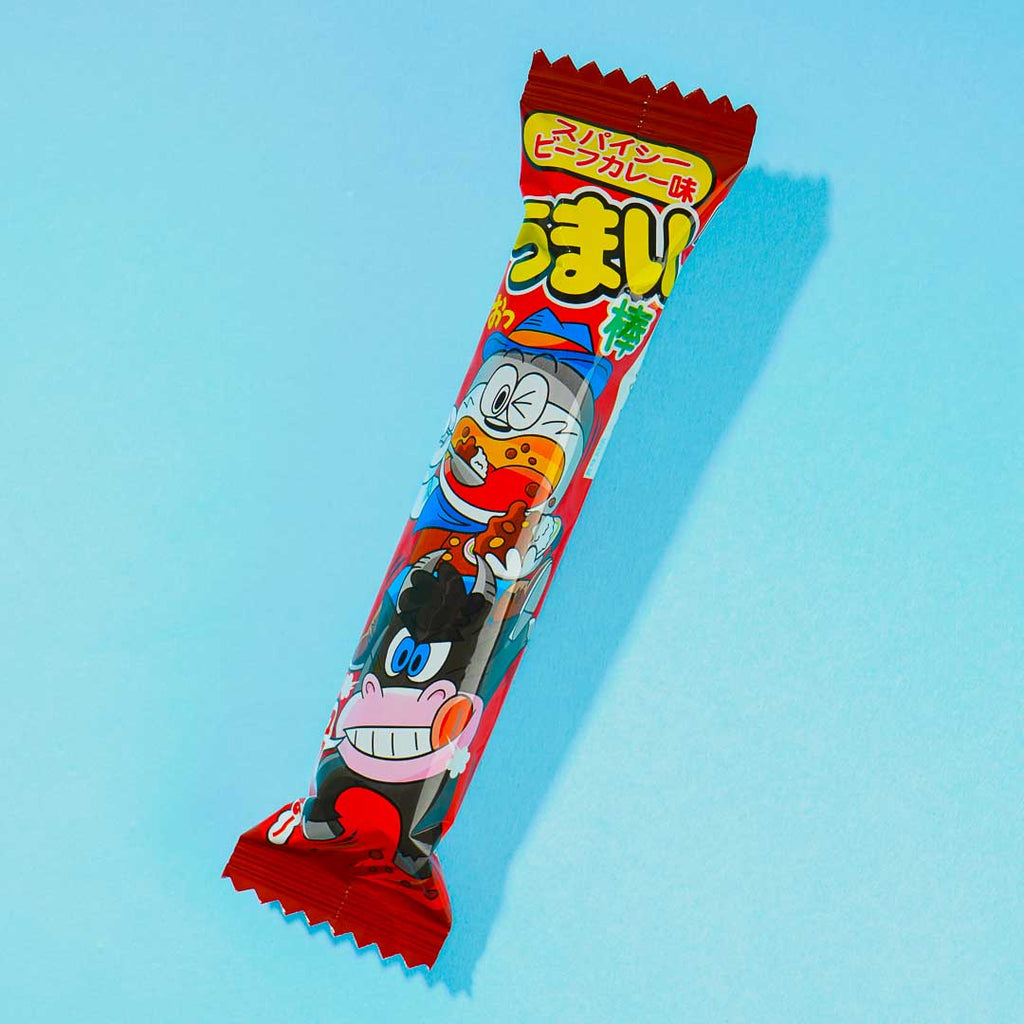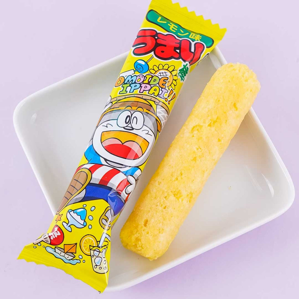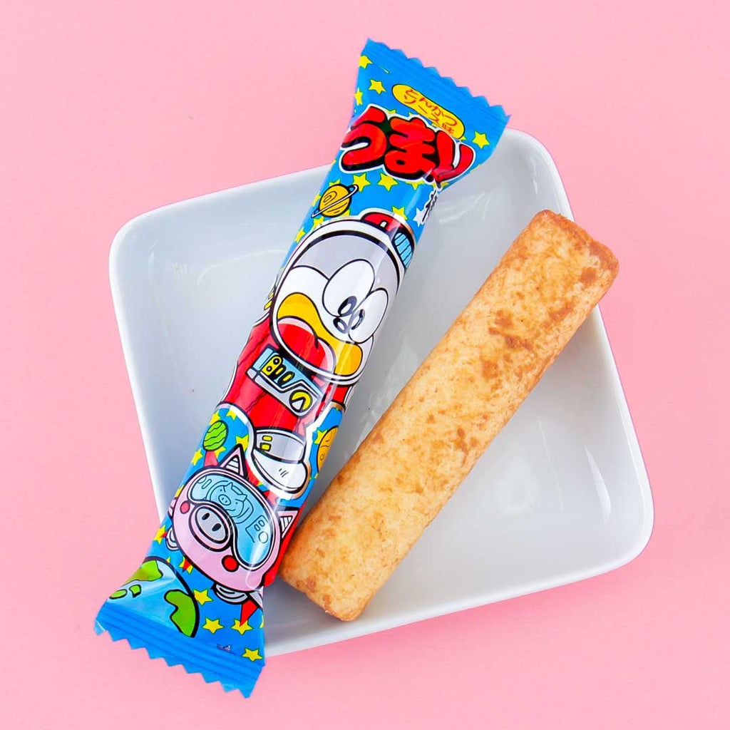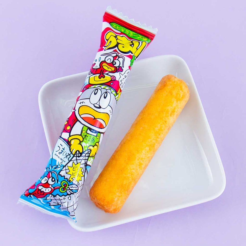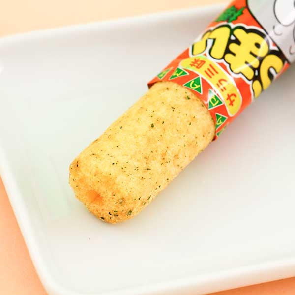 Umaibo is a yummy rod-shaped corn puff snuck from Yaokin that's been loved since 1979. This Japanese snack's name means "great tasting stick!