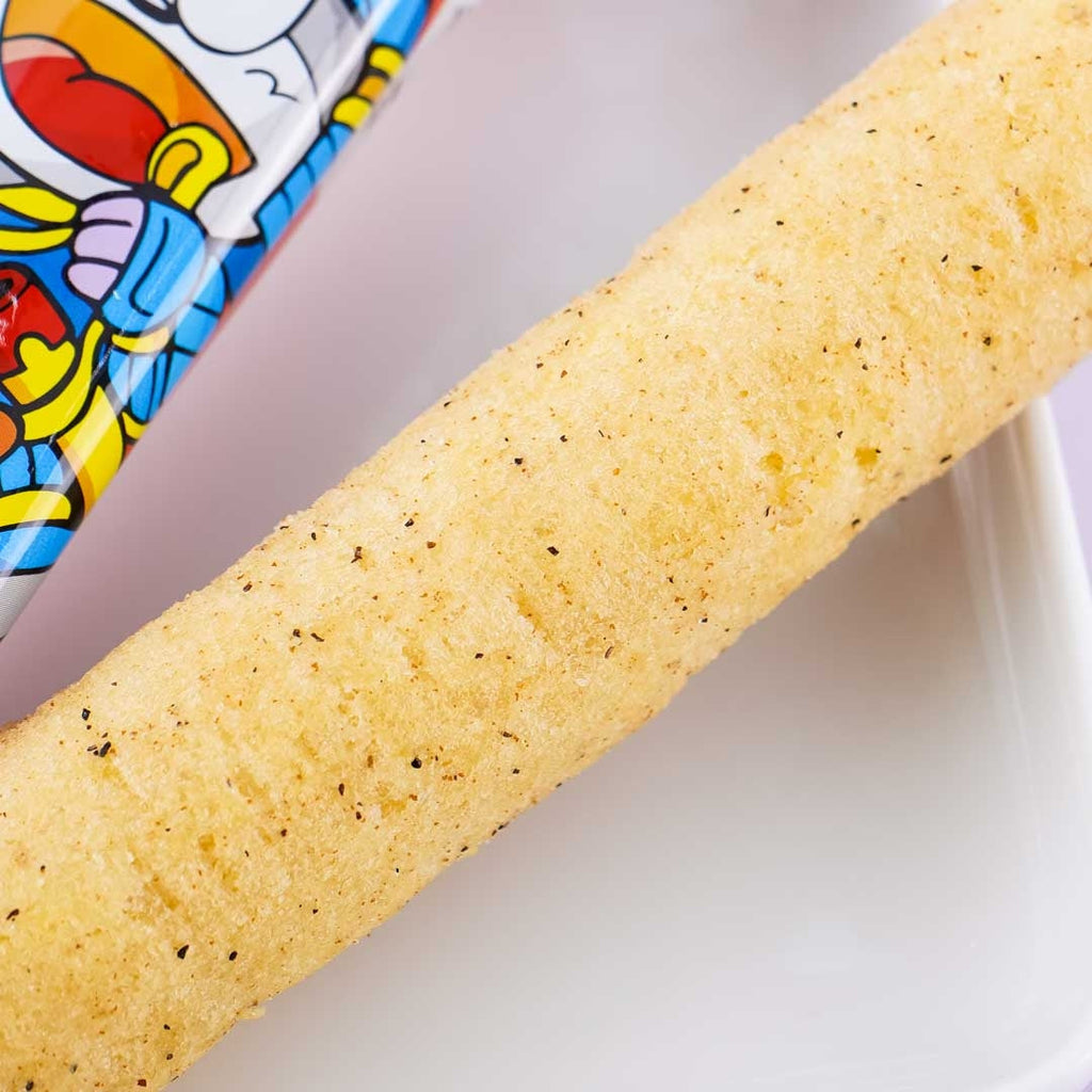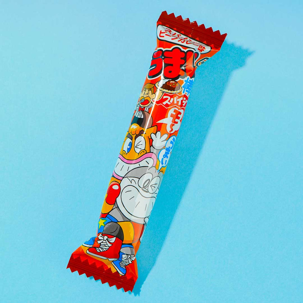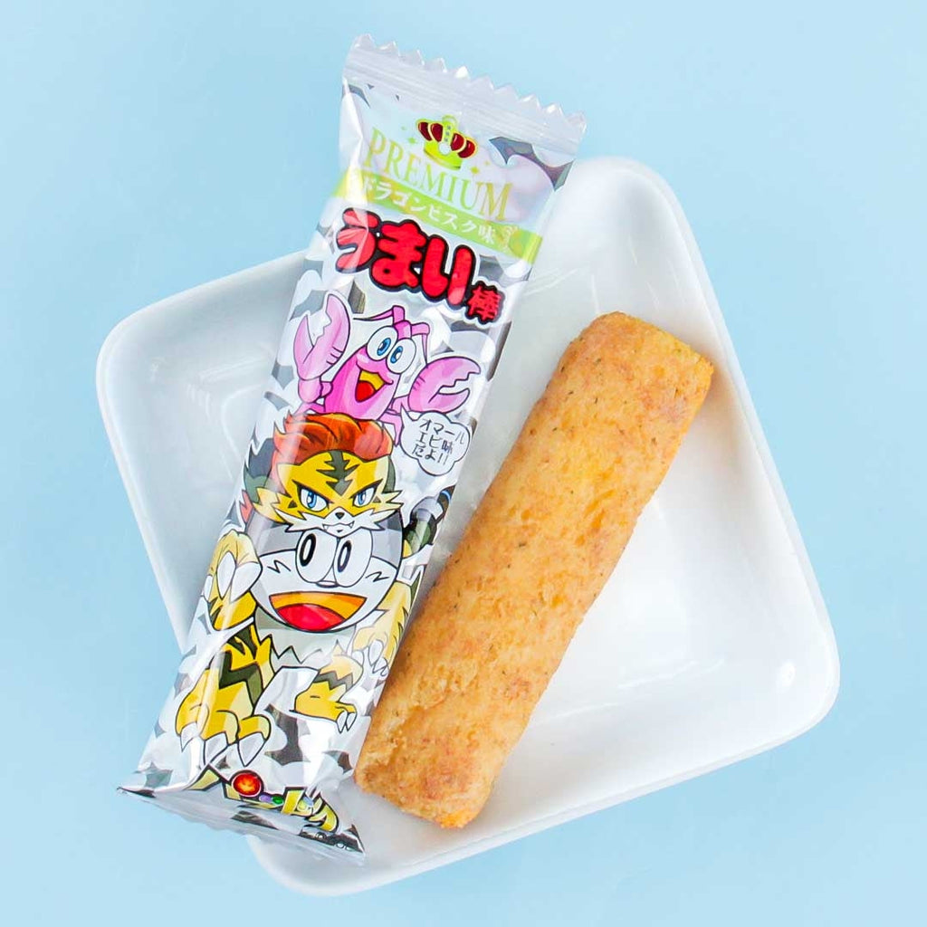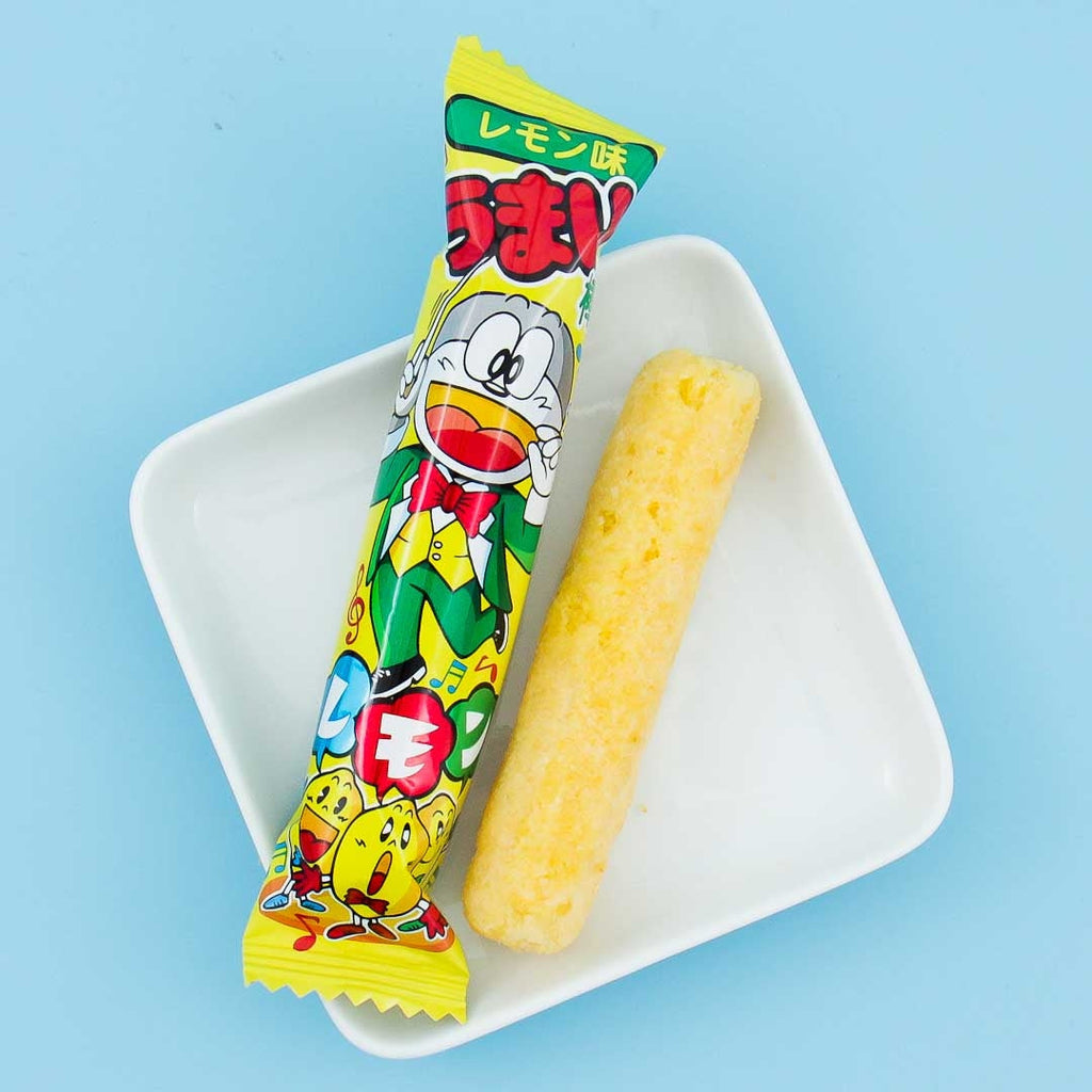 Umaibo is a yummy rod-shaped corn puff snuck from Yaokin that's been loved since 1979. This Japanese snack's name means "great tasting stick!