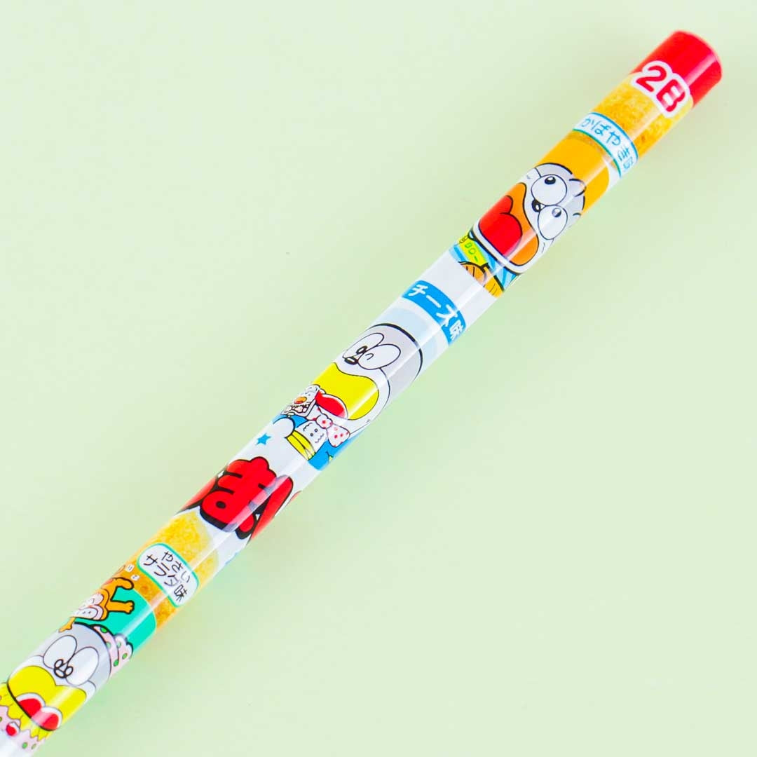 • A kawaii 2B pencil resembling the packaging of Umaibo Corn Puff